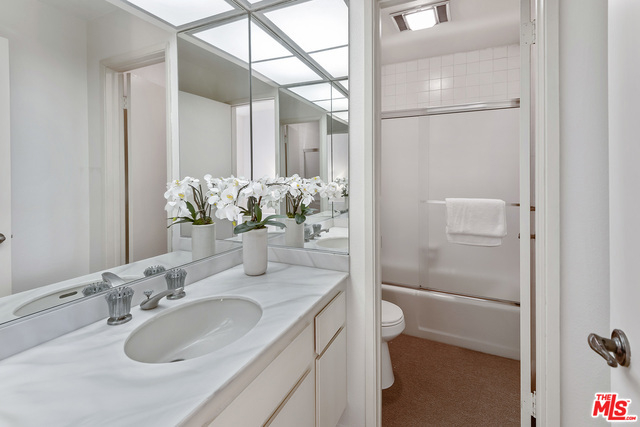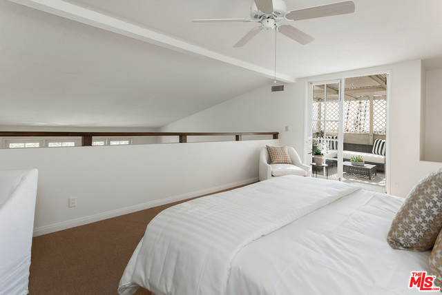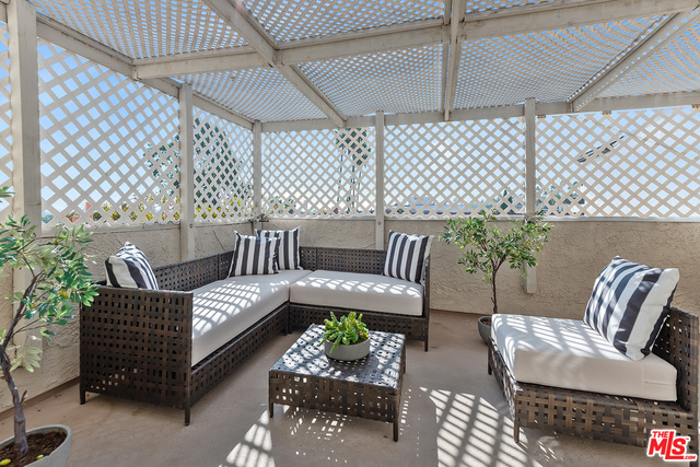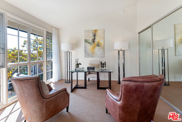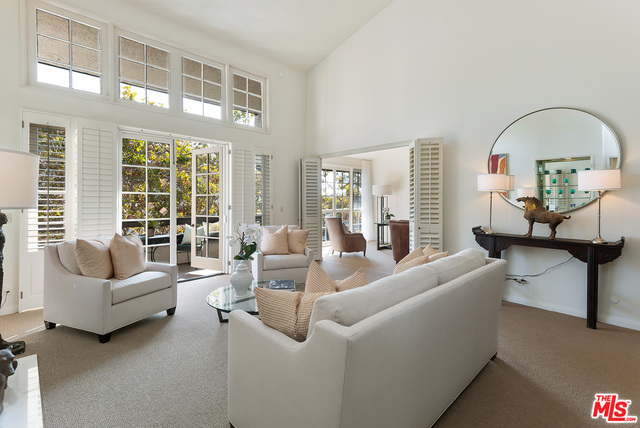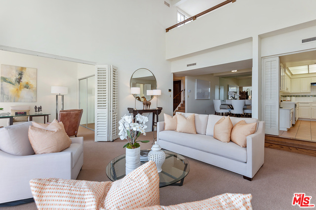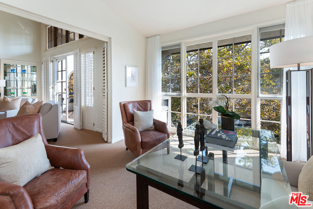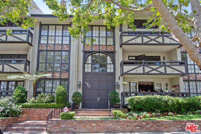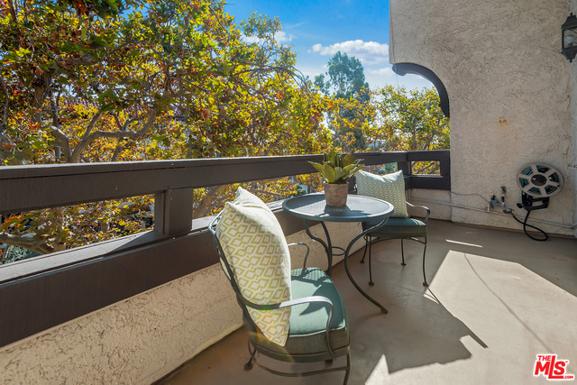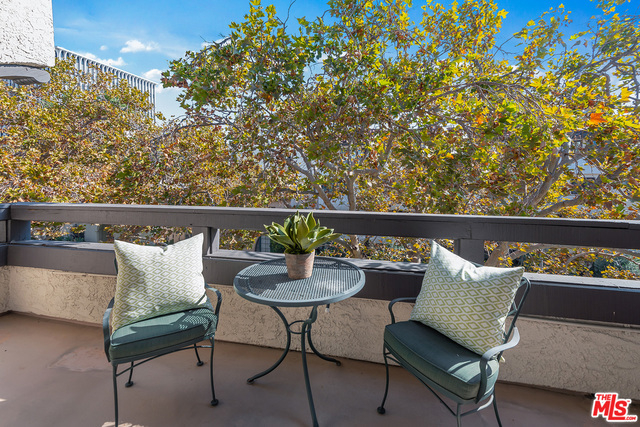 This desirable Beverly Hills front facing penthouse condo is complete with 2 bedrooms, 3 bathrooms & generous loft. An ideal layout at approx. 2,111 spacious square feet! Two-story high ceilings, great natural light & wide louvered plantation shutters! Big open living room anchored with fireplace and wet bar. Coveted location with lovely treetop views on a prime tree-lined street in this quiet Beverly Hills neighborhood. Large open balcony, a perfect environment for a morning coffee or an evening glass of wine. Additional private upstairs deck adjacent to the loft. Spacious kitchen with breakfast area and laundry room. Separate dining room. Huge master suite. Security building. 2 side by side parking spaces w/storage cabinets above and guest parking available. Close to Beverly Hills shops & restaurants.