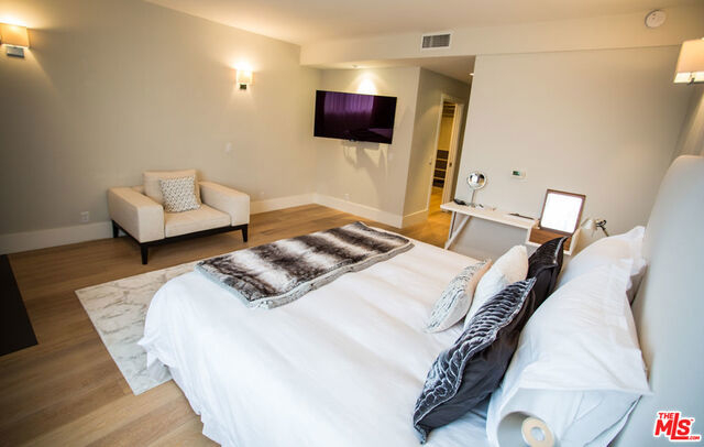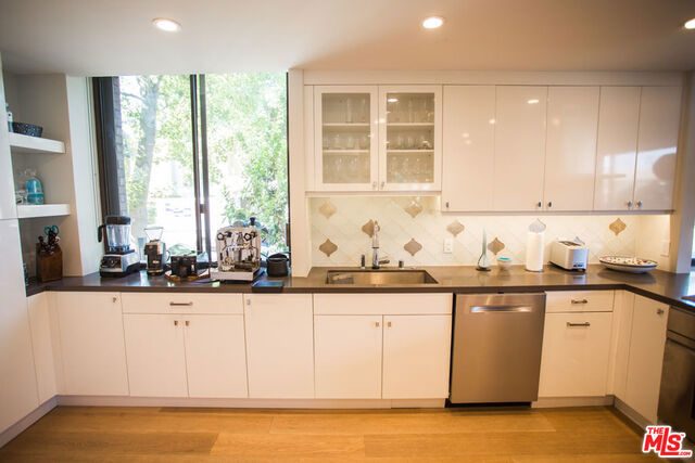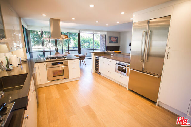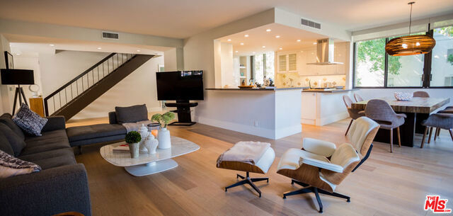 Chic highly desirable designer 2 bedroom plus den corner unit Townhouse facing Spalding Dr. in one of the most prestigious full-service luxury buildings in Beverly Hills. Recently remodeled with superior quality and exceptional taste, this unit is spacious and bright with a wonderful open floor plan and beautiful hardwood floors throughout. The large living room with fireplace flows into the dining area with walls of sliding doors that open onto the private patio. Large gourmet kitchen features quartz countertops including dual breakfast bars, abundant cabinetry, and top of the line stainless steel appliances. The spacious den with murphy bed which can be used as a 3rd bedroom and lovely powder room complete the main level. The 2nd level features 2 bedroom suites and laundry room. The gorgeous master suite features a walk-in closet, fireplace, and luxurious bathroom with full size tub and shower. The guest bedroom suite offers walls of panoramic windows that overlook lush tree-top view