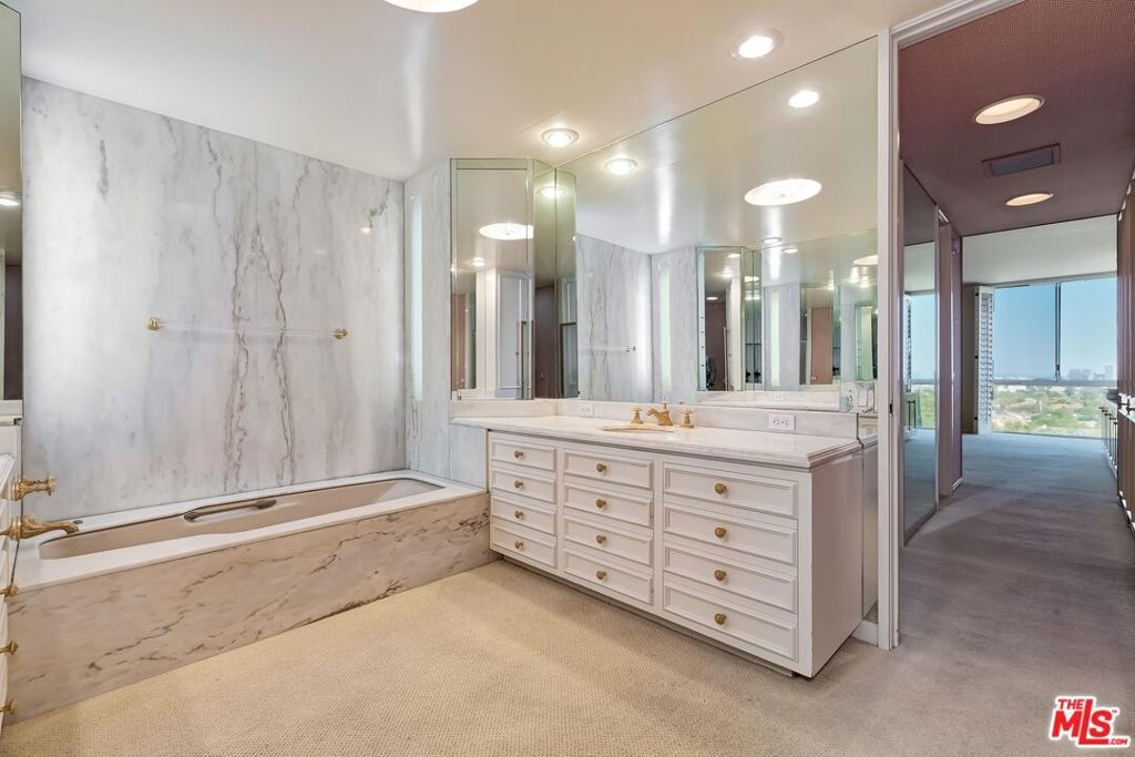 The 'Grand Prize' of 211 Spalding, the highly sought-after full-service condo residence in prestigious Beverly Hills. The owners waited a long time to purchase this specific Penthouse, then stayed for 33 years. Their dream came true and now with your updates and personal touches, this too can be your dream residence. A spacious top-floor unit, positioned in the far south/east corner of the building shares only one wall and provides gorgeous panoramic City and Santa Monica Mountain views. The floor plan consists of a double-door entry, a spacious den with a wet bar and refrigerator, a formal dining area adjacent to an eat-in kitchen with gas cook-top, and a generous-sized living room, two bedroom suites with full bathrooms, and a powder room. The condo contains a laundry room, an overabundance of interior storage, and built-in bookshelves throughout. New balcony glass railings were installed for a contemporary exterior presence and enjoyable outdoor use. A separate storage unit and two tandem parking spots are included along with 24-hour valet parking for owners and guests. The 24-7 lobby receptionist, fitness center, community room, pool and spa are a part of the 211 lifestyle. Earthquake insurance for the building and the owner's water usage are included in the HOA dues. Walk to upscale, luxury shops along Wilshire Blvd. and world-renown Rodeo Drive; partake in a meal at a variety of local restaurants, enjoy nearby conveniences of a post office, salons, coffee shops, bakeries, a grocery store, and much more. Beverly Hills public services are top-rated.