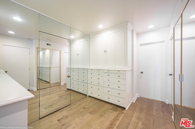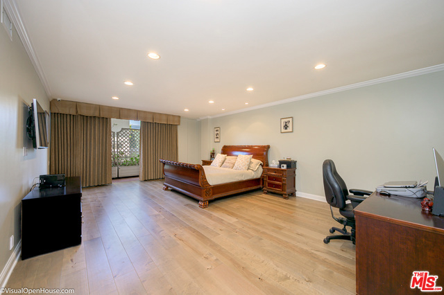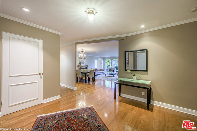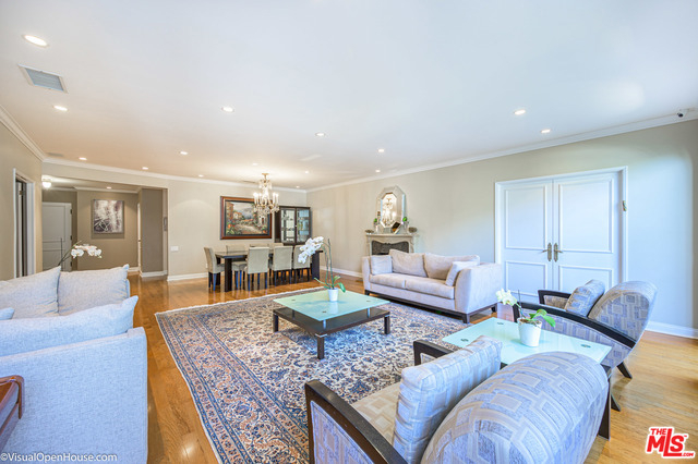 Bright and spacious unit located in the heart of Beverly Hills. Enter the double doors to a large living room with gas fireplace, hardwood floors and crown molding throughout unit. Large kitchen with granite countertops, backsplash and center island. Large and bright living room and dinning room is perfect for entertaining. The adjacent library/den is complete with custom built cabinetry & shelving as well as a beautiful bar. 3 bedrooms, 2.5 baths. Master bedroom features 2 walk in closets and built in cabinetry. The building offers amenities including a pool, spa, sauna, a huge community/entertaining room, a gated garage with 2 tandem parking spaces and 24 hour valet , also an on-site personal storage unit. Ideally located on a beautiful tree-lined street within blocks of fine dining, luxury shopping and the esteemed Beverly Hills schools. The highly desirable location and comfortable floor plan make this condo a must see!