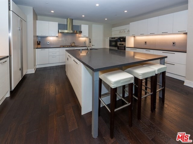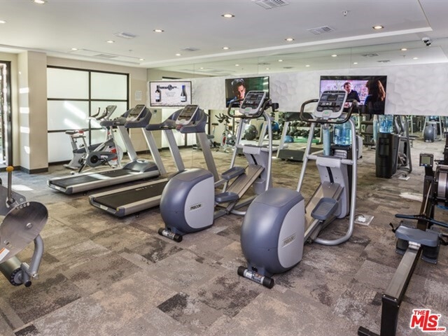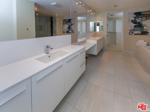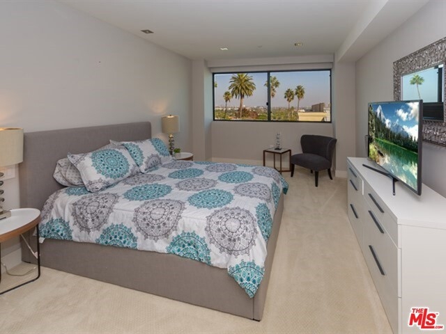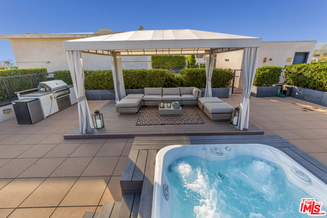 Stunning penthouse, very large rooftop deck with cabana, large seating area, private spa and BBQ located in the heart of Beverly Hills. The living room with wood floors and dining area featuring views of palm trees and the city offers open floor plan with sliding glass doors to a large balcony. Master bedroom offers a large and luxurious master bathroom with separate shower and bath tub, vanity desk and extra large walk in closet.The contemporary kitchen offers high-end appliances, luxurious cabinetry, 48" Subzero Refrigerator/Freezer, built-in Miele coffee machine and an extra large island with a breakfast bar. Attention to detail enhances the living spaces for a timeless appeal. Both bedrooms feature en suite bathrooms. Automated shades throughout the unit.The spacious covered balcony is great for al fresco dining. 3 car parking spaces, large storage, part-time doorman, gym and meeting room.