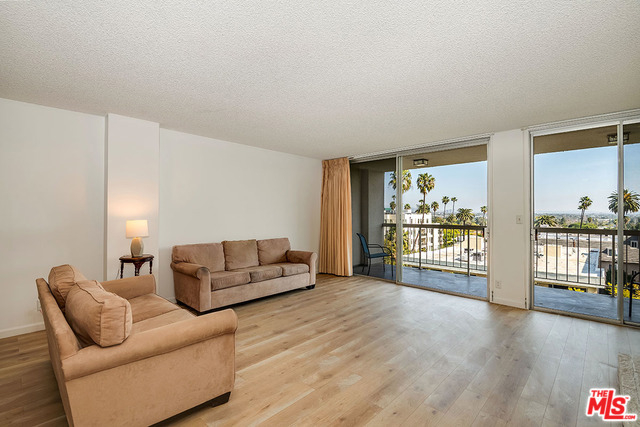 Bring your imagination to this oversized (1500+ square foot) 1 bedroom 1.5 bath +den/office in the heart of North Beverly Hills. Rare opportunity to purchase this light filled front facing unit with views of the Hollywood Hills and Downtown!!! 1st time on the market in 41+ years. Upgraded floors, granite countertops, open floor plan, inside laundry hookups, ready for your touch. Large outdoor patio is a great place to hangout. Luxury building with pool, recreation room, garden area and two tandem parking spaces. A short distance to Robertson Blvd shops and restaurants, Bristol Farms, central Beverly Hills boutiques and WEHO. HOA includes basic cable and internet. Don't miss out! Sold AS-IS