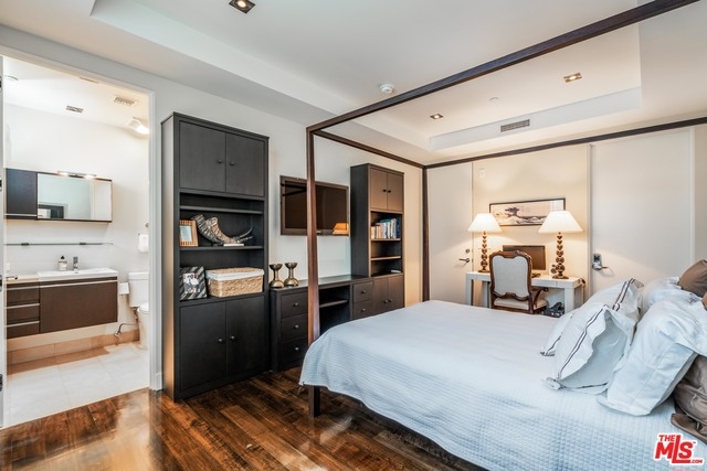 Amazing Value -Rarely Available. This Palm Meridian luxury residence occupies the entire South wing of the building, from the front to the back. Luxuriously appointed 3BR + 3.5BA sleek modern condo built in 2008, in a controlled-access Beverly Hills doorman building of only 13 private residences. The Living Rm & Dining Rm offer French Doors that open to a large view terrace. The gourmet Gaggenau, Miele, and Wolf appliance, eat-in kitchen opens to a spacious Family Room. The Master Suite includes dual walk-in closets and a beautiful marble bathroom. Every bedroom offers en-suite baths, recessed lighting and upgraded closet systems. Located on the 4th floor, the light-filled single level residence offers many luxury upgrades and a separate laundry room with service entrance. Also included is gated underground parking for 3 cars, a large private storage room, and a community fitness gym room. A rare opportunity in Beverly Hills!