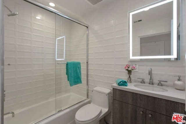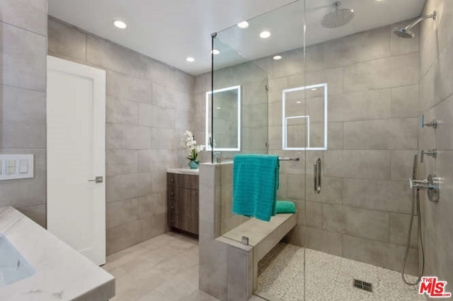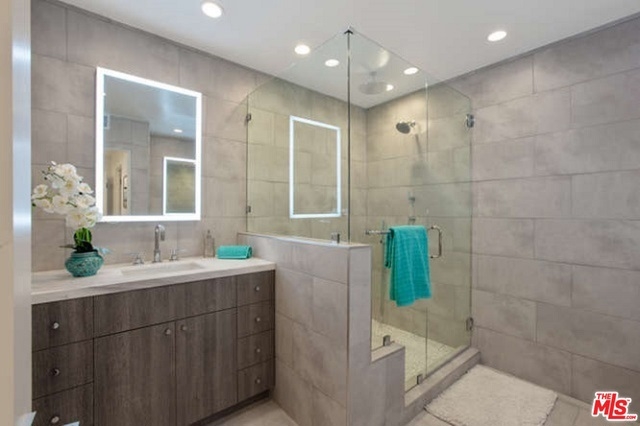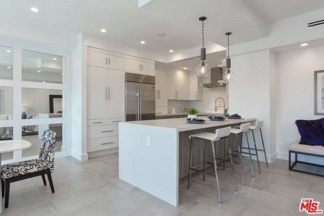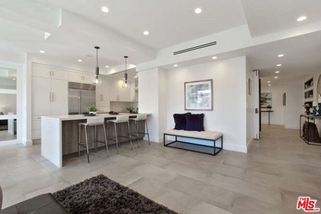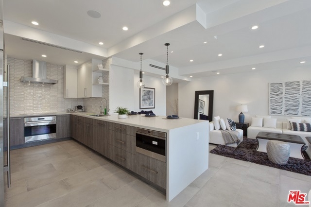 This is a totally remodeled open loft style condominium in a convenient part of Beverly Hills with a wonderful open space feel.This bright elegant two bedroom has a beautiful living room with an Italian Marble mantel ,romantic fireplace and porcelain floors throughout. The double pane windows/doors invite natural light into the spacious dining area, kitchen and living room with views of the Century City skyline. There are stunning walls perfectly lit for art. There are LED lights ,a Lutron Remote Light Control System with speakers throughout for easy Bluetooth connection for music and entertainment .The kitchen has Custom Cabinets and Cesarstone countertops for dining and entertaining. The kitchen has stainless steel appliances, Sub Zero refrigerator and Wolf range/oven, plus drawer cabinet microwave.There is an office /TV entertainment area off of the living room, and serene Bedroom suites with City views and their own private baths and custom closets. . Do not miss this one.