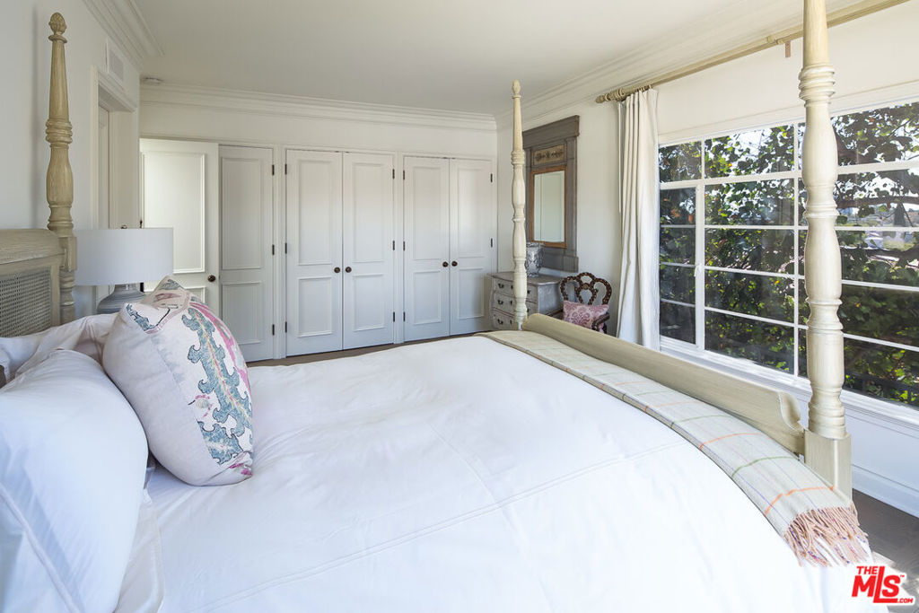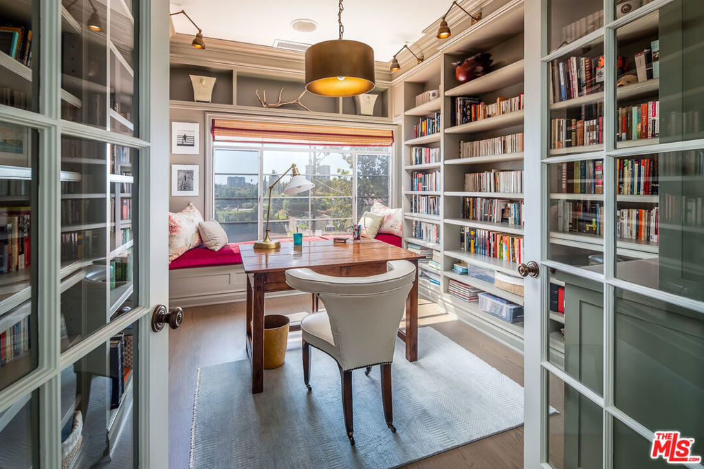 Paris meets Beverly Hills in this sophisticated and exquisitely updated top floor penthouse, flooded with an abundance of natural light, and crowned by a private and expansive rooftop deck featuring stunning southern and western views. Created by architect Peter Choate and interior designer Waldo Fernandez, this luxurious turn-key penthouse features 2 bedrooms, 2 bathrooms plus den/office, skylights and tranquil neighborhood tree lined views. Situated in the heart of Beverly Hills and brimming with modern amenities, high-end finishes, high ceilings and custom wall coverings, every element conspires to elevate both warmth and elegance. A custom fitted chef's kitchen with Viking appliances leads to a large laundry room outfitted with a Miele washer and dryer and extra storage. Two oversized bedrooms feature an abundance of closet space and en suite sumptuous marble bathrooms. The building also features a state-of-the-art security system with cameras throughout the premises, secured underground parking, elevator access and additional storage. Situated on a peaceful street only a block away from Beverly Hills' famous shops and restaurants.