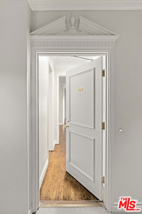 Experience refined living in the prestigious 9601 Charleville, designed by renowned architect Peter Choate and acclaimed designer Waldo Fernandez. This front-facing, tree-lined studio is just one block from the world-class shopping and dining of Beverly Hills' Golden Triangle. The residence blends classic sophistication with modern convenience, featuring dark hardwood floors, floor-to-ceiling windows, and elegant crown moldings. A chef's kitchen boasts Viking appliances and blue stone marble counters, while the bathroom is finished with timeless Carrara marble. Amenities include gated subterranean parking, full-sized storage, and wiring for cable, high-speed internet, and DirectTV. Residents also enjoy access to a beautifully appointed rooftop deck with sweeping city views, along with secure entry and monitored building access. A rare pied-a-terre that combines pristine quality, unmatched location, and timeless design.