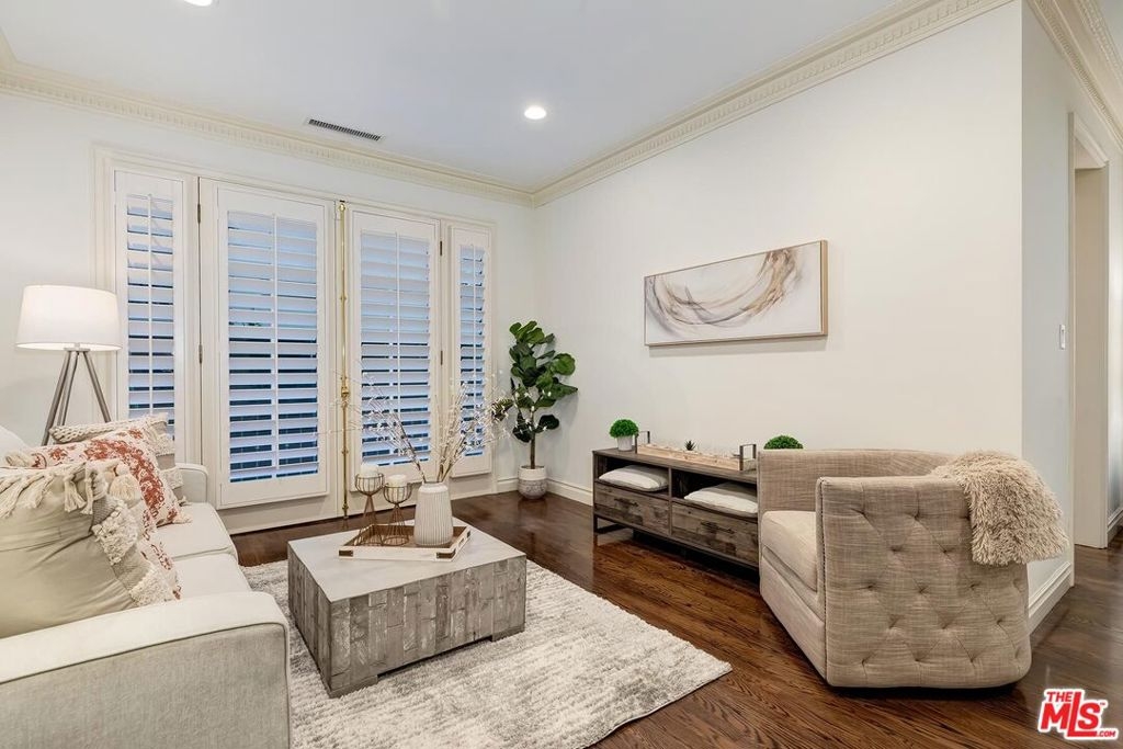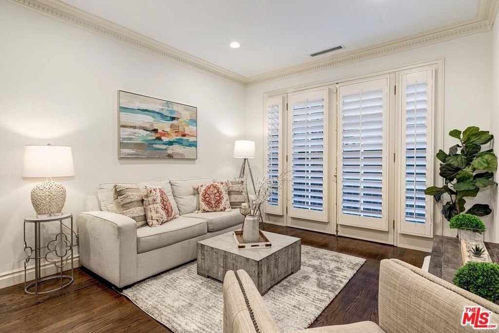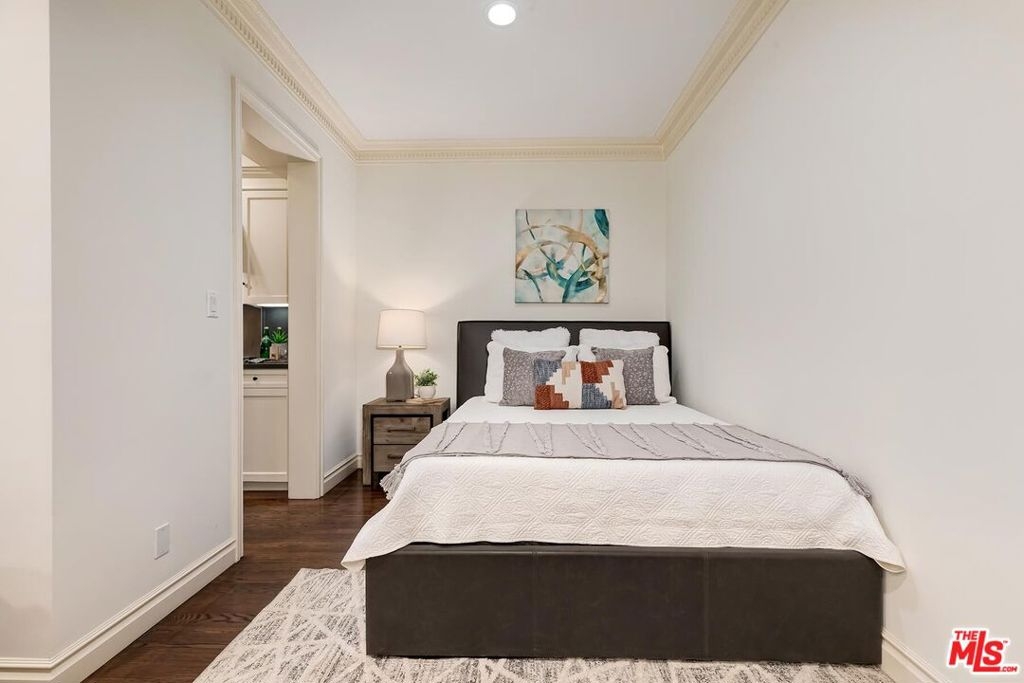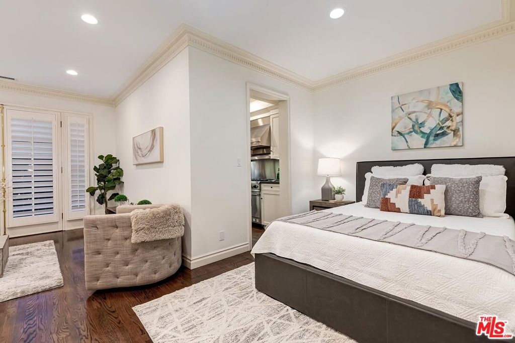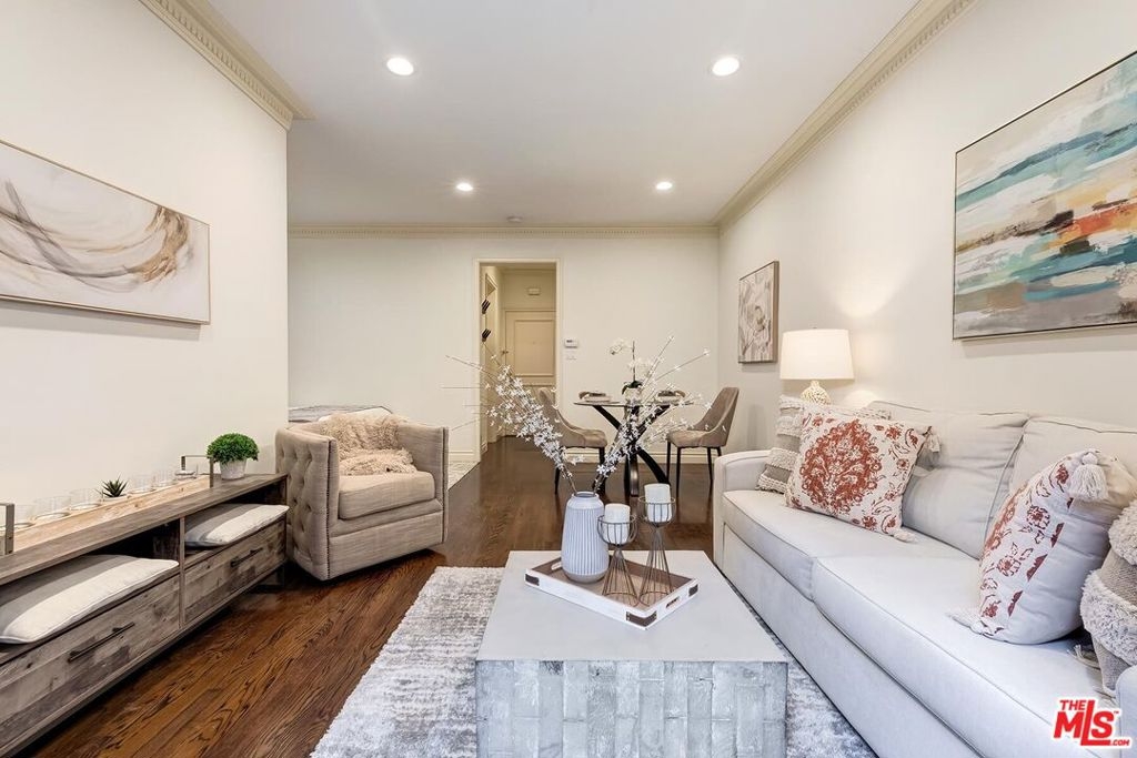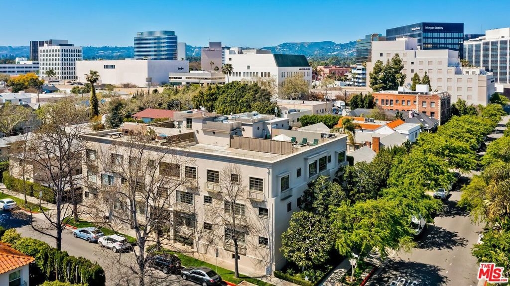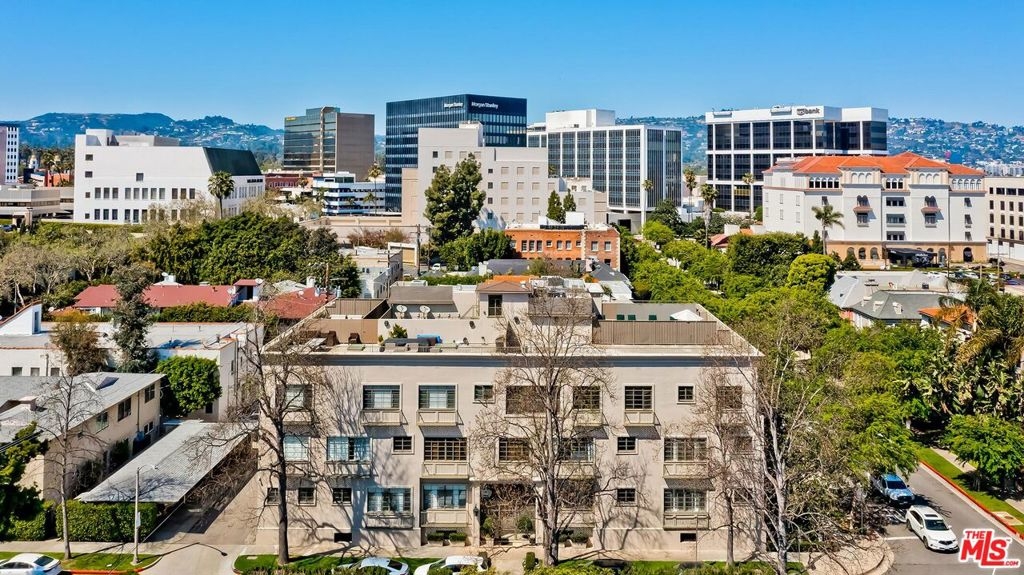 Location! Location! Location! This sophisticated and upscale Manhattan-style Pied-A-Terre is located in the heart of Beverly Hills steps from some of the finest restaurants & shopping the city has to offer. Located just south of Saks Fifth Avenue and two blocks west of the Beverly Wilshire Hotel and world-famous Rodeo Drive. This stylish condominium was remodeled to perfection by world-renowned "interior designer to the stars" Waldo Fernandez and noted architect Peter Choate. The unit features a chef's gourmet galley style kitchen with stainless steel appliances including a Viking restaurant sized six burner gas stove, beautiful bluestone marble countertops, rich solid oak hardwood floors, high ceilings with crown molding, Bosch washer & dryer, central heat and air, cable & internet ready. The luxurious bath has marble countertops and high-end fixtures. This warm and inviting condominium features French doors with custom plantation shutters that open onto your own private terrace. The unit includes two tandem parking spaces with additional locked storage in a gated and secure underground garage. There is a spacious rooftop deck with expansive views of Century City and Beverly Hills. The building features a state-of-the-art security system with cameras and an elevator. Minutes to Century City, Westwood, the Sunset Strip, West Hollywood, and Beverly Grove. In the heart of it all and an investment in one of the world's most glamorous cities. Currently the least expensive condo in all of Beverly Hills.