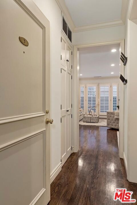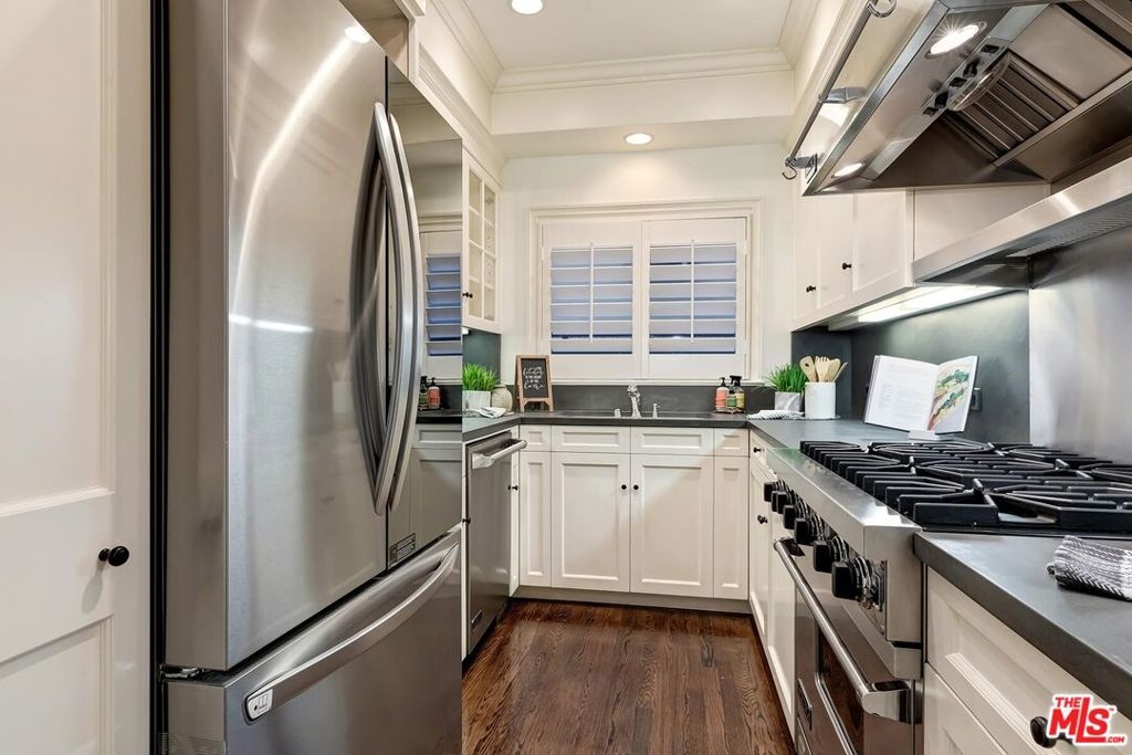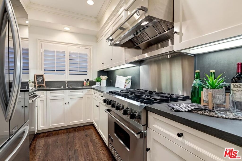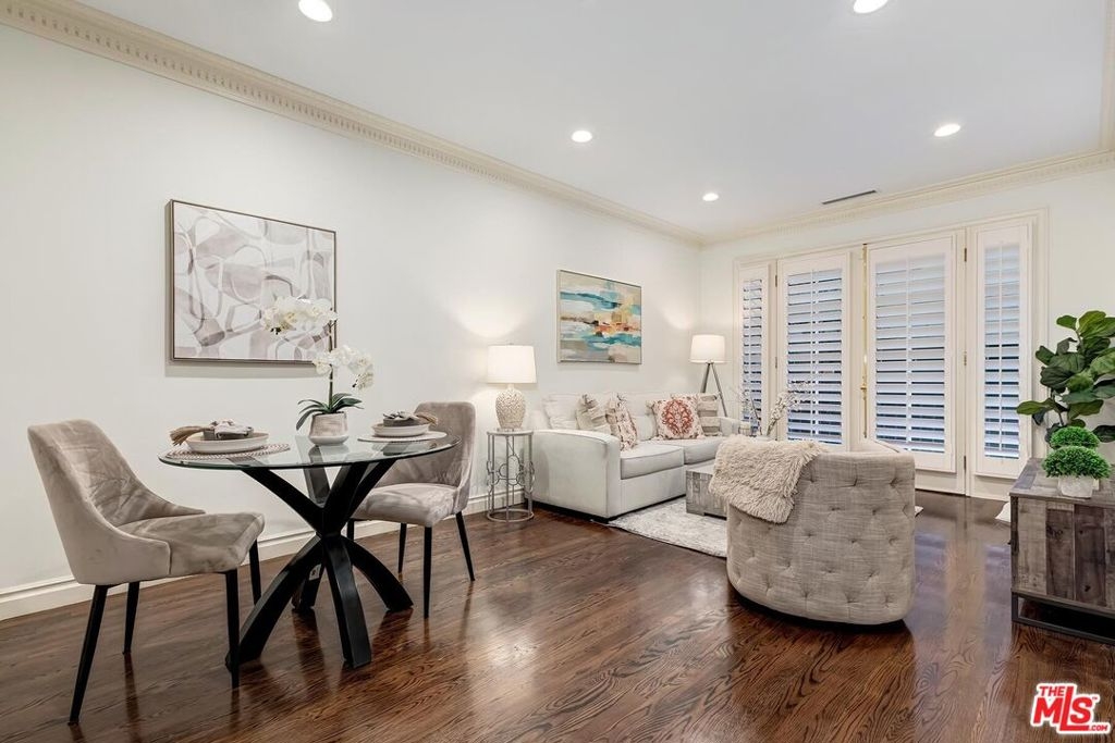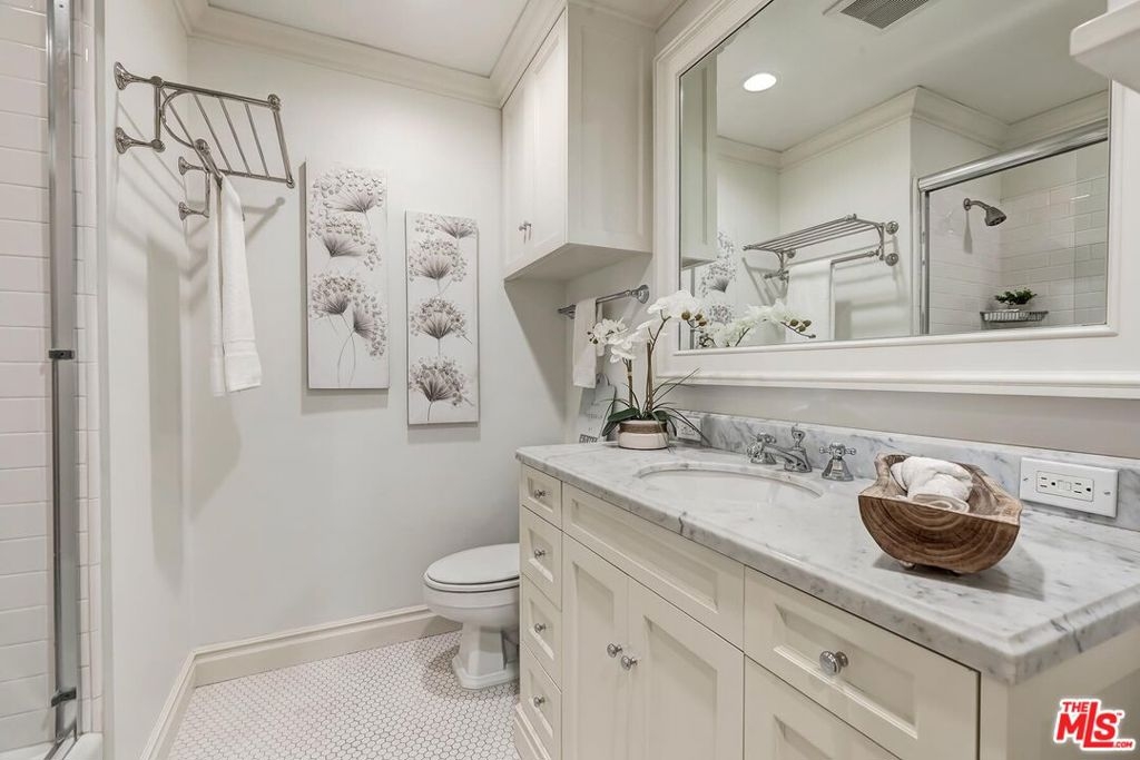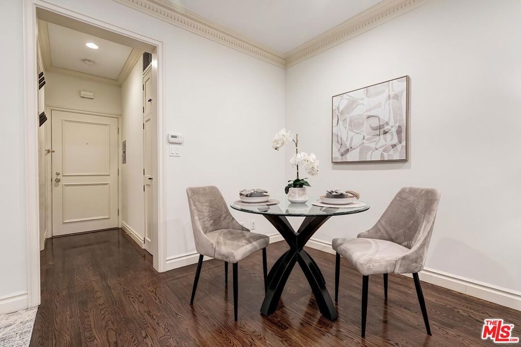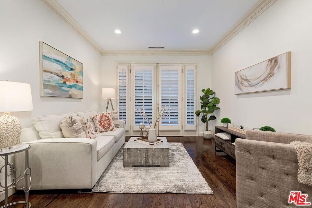 Location! Location! Location! This sophisticated and upscale Manhattan-style Pied-A-Terre is located in the heart of Beverly Hills steps from some of the finest restaurants & shopping the city has to offer. Located just south of Saks Fifth Avenue and two blocks west of the Beverly Wilshire Hotel and world-famous Rodeo Drive. This stylish condominium was remodeled to perfection by world-renowned "interior designer to the stars" Waldo Fernandez and noted architect Peter Choate. The unit features a chef's gourmet galley style kitchen with stainless steel appliances including a Viking restaurant sized six burner gas stove, beautiful bluestone marble countertops, rich solid oak hardwood floors, high ceilings with crown molding, Bosch washer & dryer, central heat and air, cable & internet ready. The luxurious bath has marble countertops and high-end fixtures. This warm and inviting condominium features French doors with custom plantation shutters that open onto your own private terrace. The unit includes two tandem parking spaces with additional locked storage in a gated and secure underground garage. There is a spacious rooftop deck with expansive views of Century City and Beverly Hills. The building features a state-of-the-art security system with cameras and an elevator. Minutes to Century City, Westwood, the Sunset Strip, West Hollywood, and Beverly Grove. In the heart of it all and an investment in one of the world's most glamorous cities. Currently the least expensive condo in all of Beverly Hills.