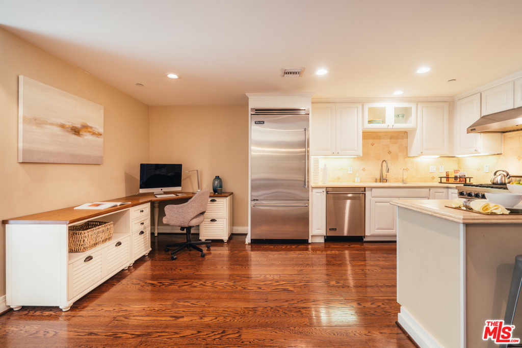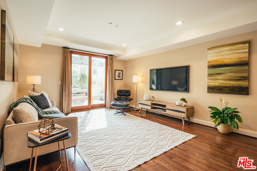 1BD/1BA 1st-floor condo with a large private patio in the heart of Beverly Hills. Open the oversize keyless front door & experience an open floor plan with abundance of natural light that leads you to your outdoor oasis. Open gourmet kitchen w/Viking appliances & a 2-seater bar area to have a quick meal or entertain the person cooking! Office area, dining area & living room complete the entertaining space. Gorgeous hardwood floors, high ceilings with crown molding, LED lights, AC, security. Master suite with en-suite spa-like bathroom with dual sinks. Building amenities include: work-out room, storage closet, SxS parking+guest spaces. Short walk to the shops, restaurants & famous hotels in BH+1-block behind Robertson! LOCATION !! LOCATION !! LOCATION !!