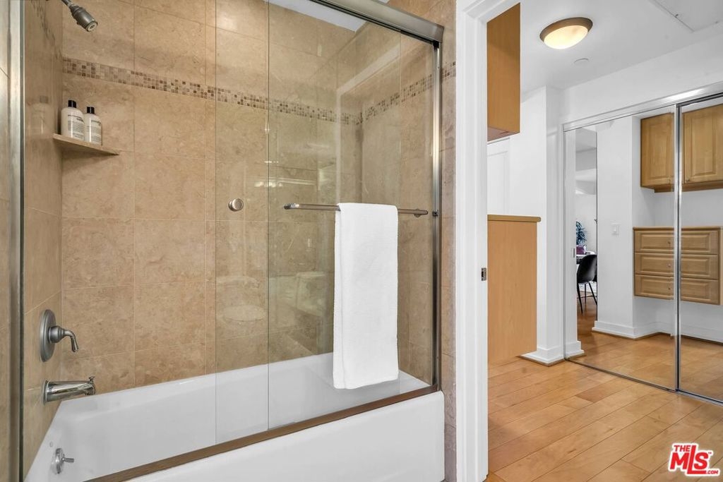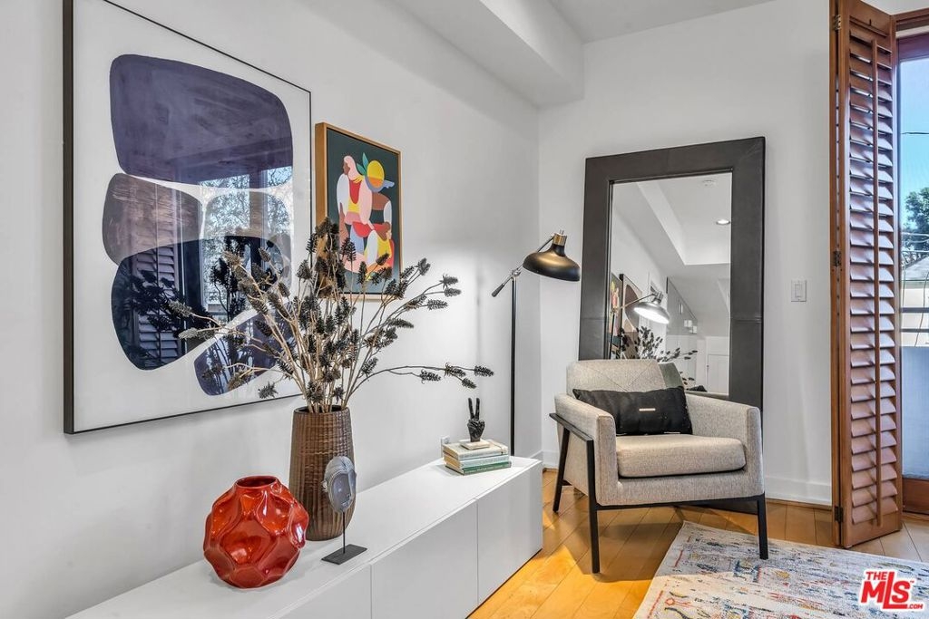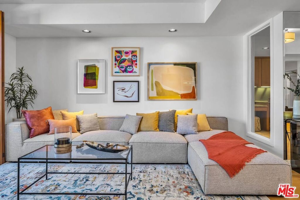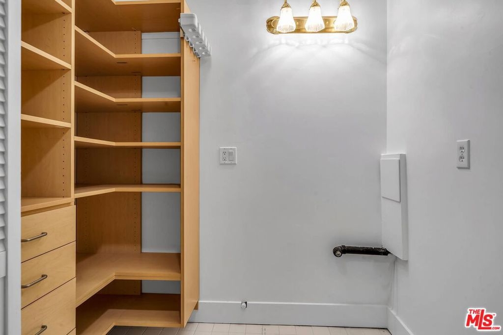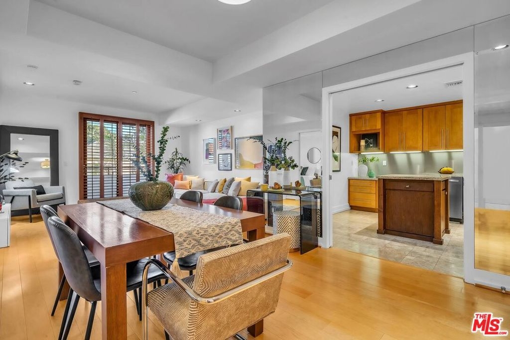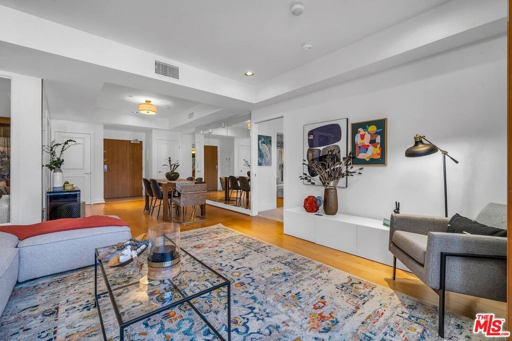Spacious, turn-key unit located in fabulous building North of Wilshire and two blocks West of Robertson in Beverly Hills! Light and bright dining and living space with hardwood floors, high ceilings, open layout and balcony with view of tree tops and blue skies. Well-appointed details throughout. Graciously sized kitchen features stainless steel appliances, marble flooring and double-pocket doors to have an open feel to dining area or close off any mess in the kitchen. Entertainer's delight! Ample storage, closet space in unit with dressing area, separate laundry area and custom built-ins. Lovely feel to this home! Building amenities include fitness center, keyless doors, private storage area (7x8), guest parking, safety systems with backup generator and substantial reserves. Conveniently located near restaurants, shopping and hotels of Beverly Hills and West Hollywood!