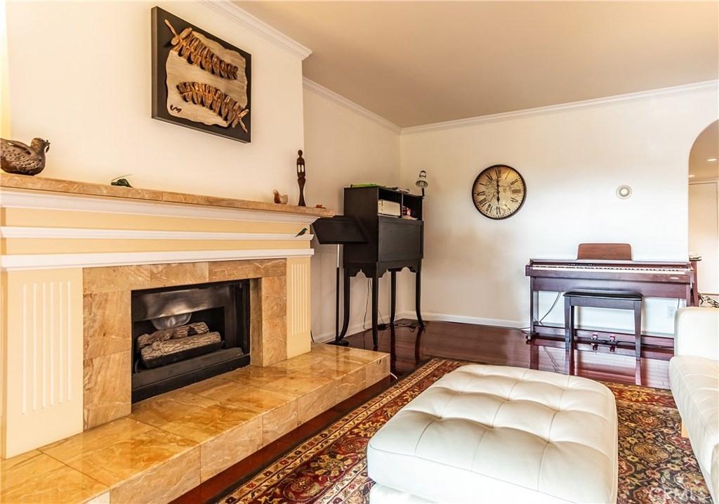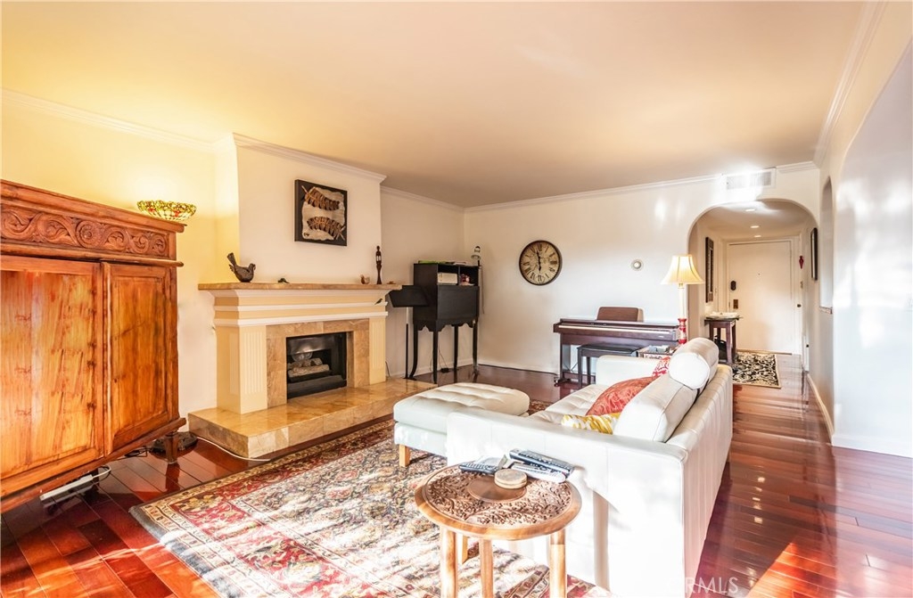 Stylish 2 bedroom/2 bath corner unit condo just South of Wilshire/La Cienega in Beverly Hills. Contemporary 12 unit building. This attractive second floor unit has a unique Spanish bungalow vibe. Featuring curved archways, teak hardwood floors, Central A/C, flat ceilings with recessed lighting and crown moldings, oversized kitchen and eating area. Separate dining room, gas fireplace with marble mantle, private laundry room in unit, plantation shutters and a large private patio. Convertible den currently being used as 3rd bedroom. HOA includes Earthquake insurance, water, 2 car parking spaces and additional storage area in garage. Beverly Hills school district, security building and elevator. Close to Beverly Center, world famous restaurants, public transportation, and LACAM. SO MUCH MORE...Time to move up to TOWER!