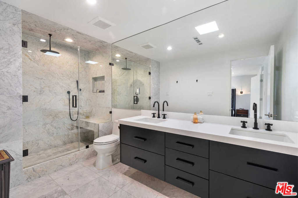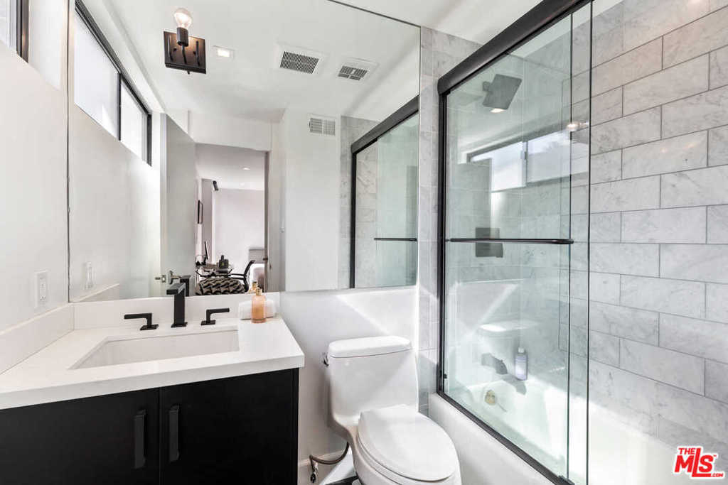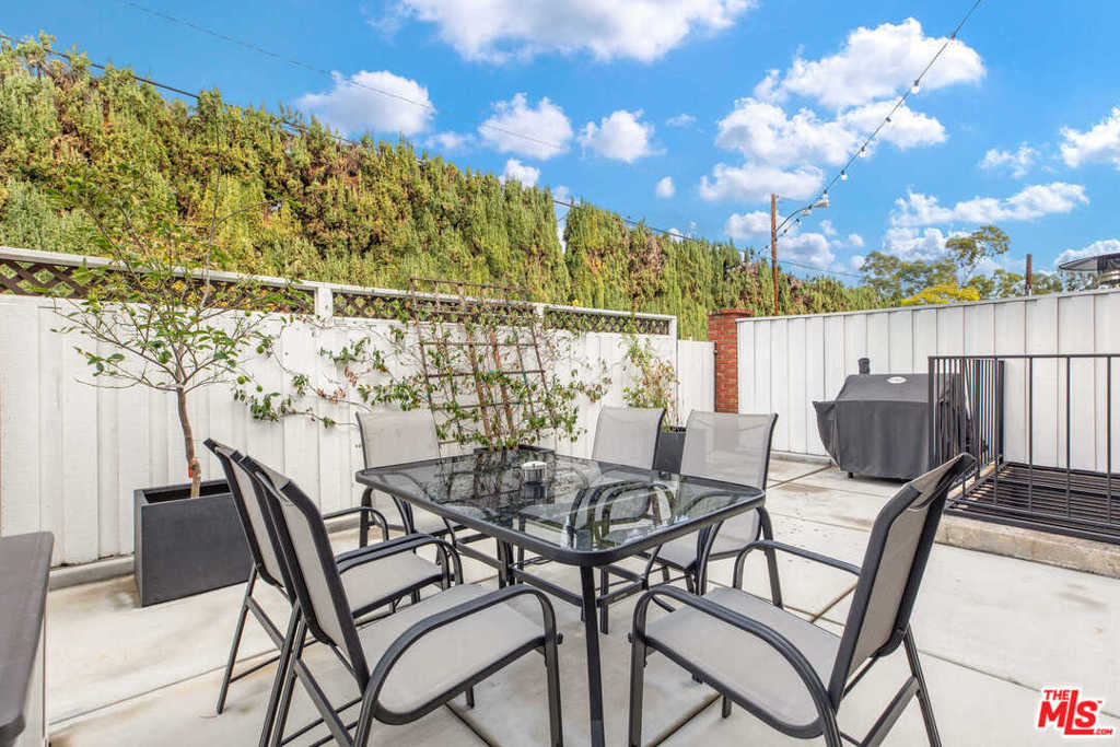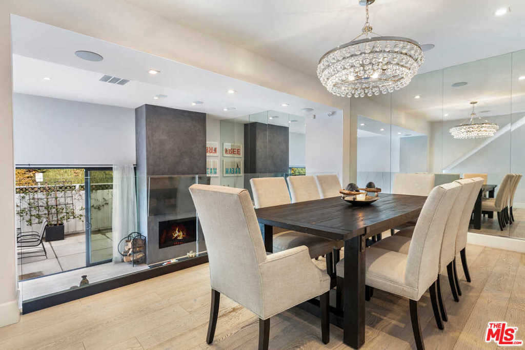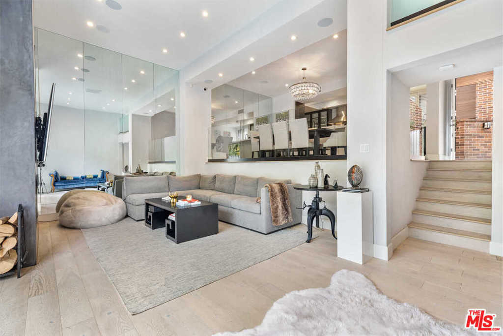 Located in the heart of Beverly Hills, this bright, sunlit, 3-bed, 3-bath, townhome features the finest modern/contemporary finishes. Recently remodeled with hardwood floors throughout, this open floor plan is an entertaining dream. Boasting loft-like ceilings approx.14 feet, formal dining room, gas fireplace, bar, built-in speaker system, and spacious private patio. The kitchen features Viking stainless steel appliances including a 6-range stovetop/oven with exhaust, dishwasher, and fridge. White quartzite countertops throughout create ample space for cooking. Upstairs, you'll find two bedrooms equipped with ensuite baths, including the primary bedroom which flaunts a massive walk-in closet. This townhome also features a large laundry room, gated controlled access, secure parking for two side-by-side spaces, and added storage. Enjoy being steps away from the most iconic hotspots in Beverly Hills, such as Rodeo Dr, and more. Seller has disclosed and the buyer made aware that the 3rd bedroom is not permitted.