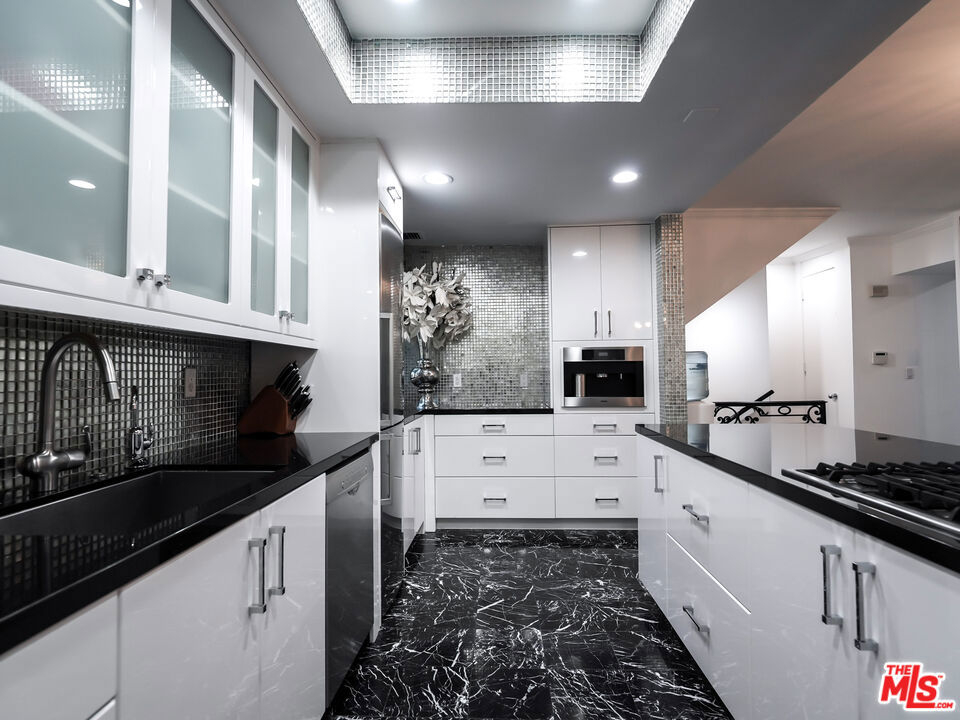 Welcome to this enchanting townhome residence, beautifully appointed with over 2,100 SF, and perfectly situated in one of Beverly Hills' most beloved streets. Just steps from the best Beverly Hills has to offer, this residence features a privately landscaped main entry, leading to the main level foyer where rich marble floors and crisp white walls set a sophisticated tone throughout. On the main level, enjoy spacious living and dining areas with an elegant, cozy fireplace in the living area, opening to a large private patio for seamless indoor/outdoor entertaining. A convenient office nook is also thoughtfully integrated into the space. A generously sized, sleek kitchen showcases expansive gleaming counter space, stainless steel appliances, a gas range, abundant storage, and a built-in Miele espresso machine. A generous island enhances both function and flow, offering additional prep space and an effortless spot for casual dining or entertaining. Upstairs, two ensuite bedrooms provide comfort and privacy. The spacious primary suite features a generous walk-in closet and a spa-inspired bath finished in white marble with custom tilework, dual sinks, and a walk-in shower. The secondary suite is equally well-appointed, ideal for guests or family, and includes a large window overlooking the private patio. The lower level includes a versatile bonus room/third bedroom, bathroom, laundry room, and direct access to secure side-by-side parking garage for two cars. Located just steps from Beverly Hills' world-renowned shopping and dining, this residence offers the ideal combination of luxury, convenience, and style - perfect as a full-time home or refined city retreat.