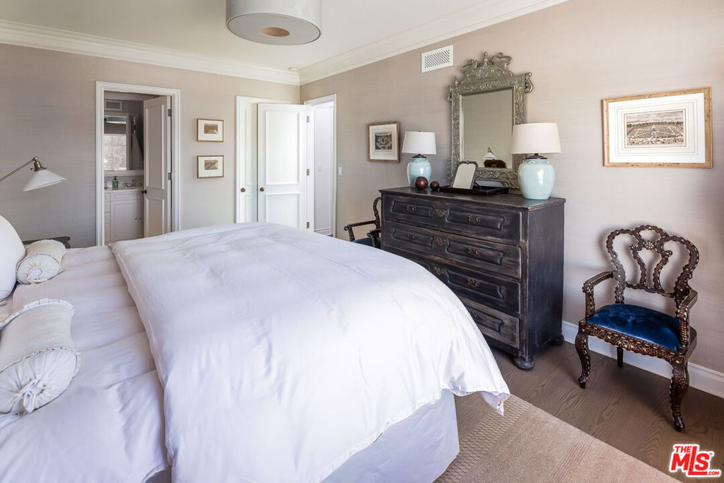 Paris meets Beverly Hills in this sophisticated and exquisitely updated top floor penthouse, flooded with an abundance of natural light, and crowned by a private and expansive rooftop deck featuring stunning southern and western views. Created by architect Peter Choate and interior designer Waldo Fernandez, this luxurious turn-key penthouse features 2 bedrooms, 2 bathrooms plus den/office, skylights and tranquil neighborhood tree lined views. Situated in the heart of Beverly Hills and brimming with modern amenities, high-end finishes, high ceilings and custom wall coverings, every element conspires to elevate both warmth and elegance. A custom fitted chef's kitchen with Viking appliances leads to a large laundry room outfitted with a Miele washer and dryer and extra storage. Two oversized bedrooms feature an abundance of closet space and en suite sumptuous marble bathrooms. The building also features a state-of-the-art security system with cameras throughout the premises, secured underground parking, elevator access and additional storage. Situated on a peaceful street only a block away from Beverly Hills' famous shops and restaurants.