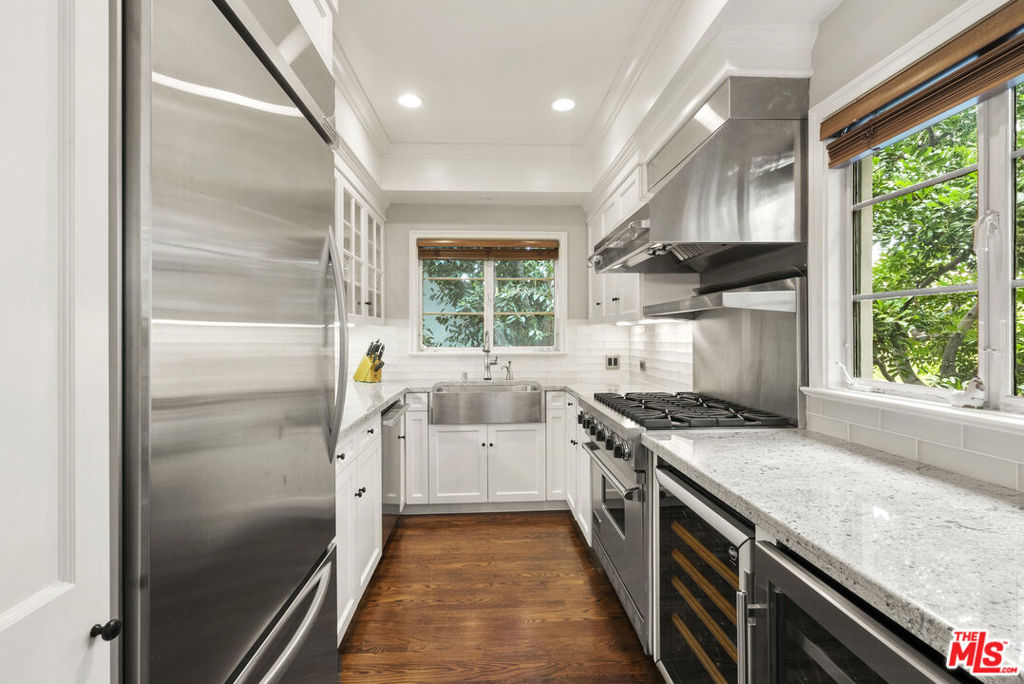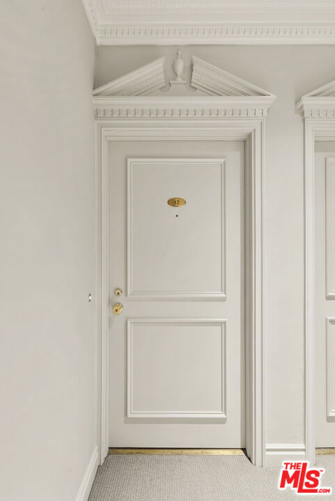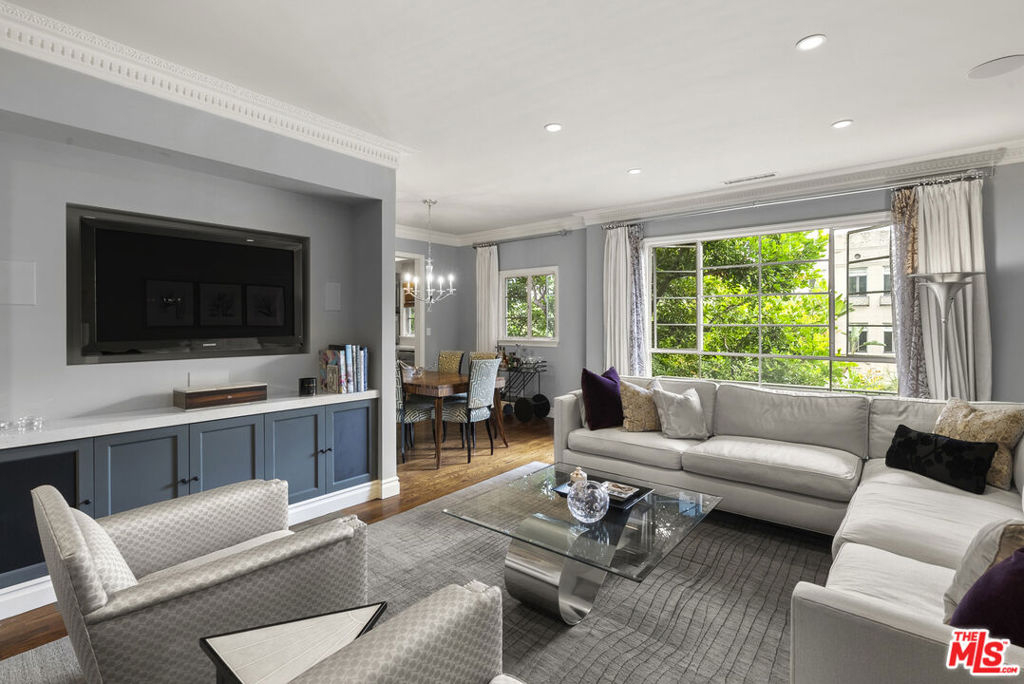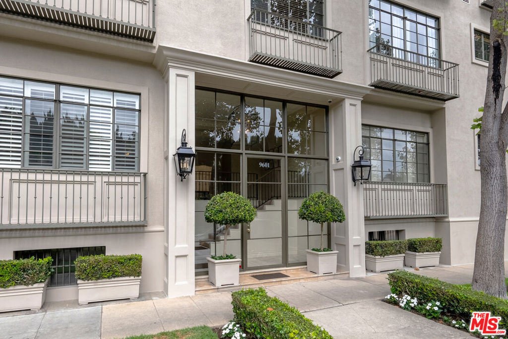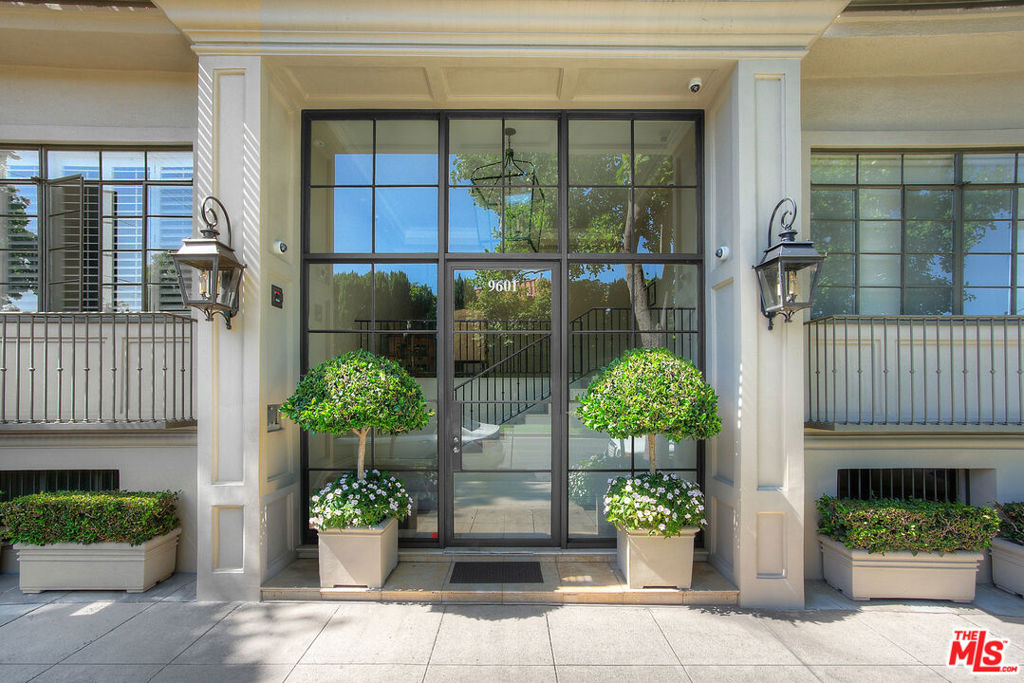 Gorgeous luxury 2 bedroom, 2 bathroom Manhattan-style condominium steps away from Roxbury Park and premier dining, retail and venues in the heart of Beverly Hills. Nicely situated on a tree-lined street with excellent walkability, this timeless building envisioned by renowned architect Peter Choate offers privacy and security to its residents with secured entry, gated parking and secondary entry designated for groceries and deliveries. A spacious formal living room with high ceilings welcomes you and flows nicely into the dining and Chefs kitchen with Viking appliances, built-in sub-zero wine refrigerator and ice maker. Picturesque framed windows illuminate the interior spaces and continue to the kitchen with lovely treetop and city light views. The oversized bedrooms feature extraordinary finishes, crown molding and high-quality, custom hardware throughout and lie opposite to full bathrooms reminiscent of boutique hotel baths with marble countertops, full shower and soaker tub. Ample space for storage and Miele washer + dryer are in unit. Expansive community sun deck with charming views makes for the perfect al-fresco setting. This unit offers the ultimate living in Beverly Hills and is not to be missed.