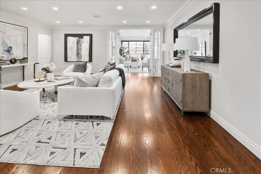 If location is everything in real estate, there is no better location than where this exquisite two bedroom, two bath Penthouse in the heart of Beverly Hills is located. It is the vision of the renowned architect Peter Choate and interior designer Waldo Fernandez and boasts its own private rooftop terrace which is perfect for entertaining providing a breathtaking view of prime Beverly Hills and downtown LA. This grand and sophisticated Manhattan style luxury condominium is a block south of Saks and only two blocks from Rodeo surrounded by some of the finest restaurants and best shopping in Beverly Hills. The fully remodeled corner unit features top of the line Viking stainless appliances with six-burner gas stove, beautiful Black Sands quartzite kitchen countertops, wet bar with a textured Fusion Blue quartzite countertop with built-in wine refrigerator, and icemaker. It features Calacatta marble in the bathrooms and all new hardware with gorgeous finishings throughout. The unit has new hardwood floors, high ceilings with crown molding, generous wall space for art, and exceptional closet space ... plus a formal dining room and private office. The condominium has a dedicated laundry area with side by side Miele washer and dryer, central air and heating and a custom hardwired alarm system. The unit has a second entry door so you don’t have to bring groceries through the front door. Whereas other buildings in the area have carports in alleys in back, this premium building has gated indoor ground-level parking with space for two cars and ample storage plus state of the art security with a monitor in the unit that allows you to see guests at the front door who you can buzz in. This spectacular condominium, with its location in the heart of Beverly Hills, is completely unique with its view, no other like it, truly one of a kind, and first time on the market since it was purchased by the original owner. The unit recently underwent a complete remodel and has not been occupied since the remodel. This is ultimate living in Beverly Hills, a rare Penthouse with its own private rooftop terrace looking directly into Beverly Hills, a rare gem.