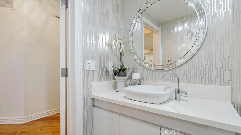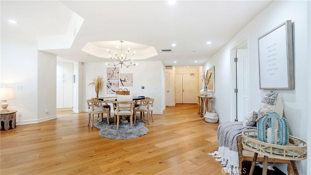 This prestigious unit is located in the luxurious Beverly Hills condominium, Chateau de Chene. This open floor plan has gorgeous hardwood engineering wood floors, bright recess lighting, and crown moldings throughout. A luxurious master bathroom features a brand new gorgeous ensuite bath with dual vanity over-counter sinks, 3 touch LED mirrors, spa-like tub, and walk-in shower. Newly painted walls and ceilings, and new appliances, and more! The complex has an oversized rooftop patio with 360-degree views, a fitness center, a meeting room, guest parking, gated parking, and a security guard/doorman during daytime hours.