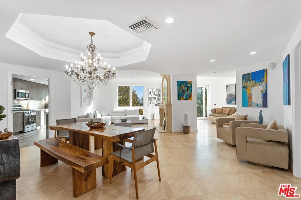 Welcome to Chateau de Chene in Beverly Hills! Enter Luxurious in every sense, front SW corner, newly Remodeled unit with 3 BR+3 BA+Den+Laundry Rm+4 Balconies, in most desired location in the building with only one common wall. Abundance of natural Lite, Park-like views from every Room, Maple Parquet floors, elegant FP in Living rm, brand New eat- in Modern Kitchen. Unit comes with 3 side by side Parking and extra Storage. Low HOA dues include Earthquake Ins, Security/Door Man, Gym, Sauna, Media/Banquet Rm, Conference Rm, Guest Parking, Massive Rooftop Deck w/ 360 degree panoramic views. Close proximity to famous Shops, Restaurants, Cedars Sinai Hospital. Included in Sale Price: Furnishings by Beverly Hills Interiors, Original Art, Bed & Bath Accessories, Linens, Wine and Spirits Collection. Also available for Lease at $9,500.