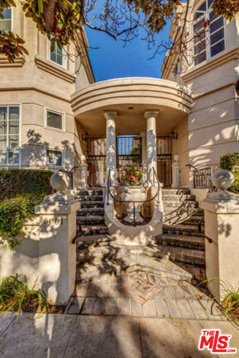 Luxury Beverly Hills townhome offers an unparalleled lifestyle. Tasteful soft modern finishes throughout. Step down living room with elegant fireplace flows to formal dining. Sophisticated kitchen with dine-in area leads to private courtyard for al fresco entertaining. Primary bedroom features corner fireplace, Juliet balcony and exquisite private bath. On this level are two additional bedrooms and hall bath. Above it all is a rooftop deck for entertaining, yoga or quiet reflection. Lower level has a den or hobby room, along with two additional storage closets. Three car garage with side by side parking is serviced by private elevator to the first and second floors.