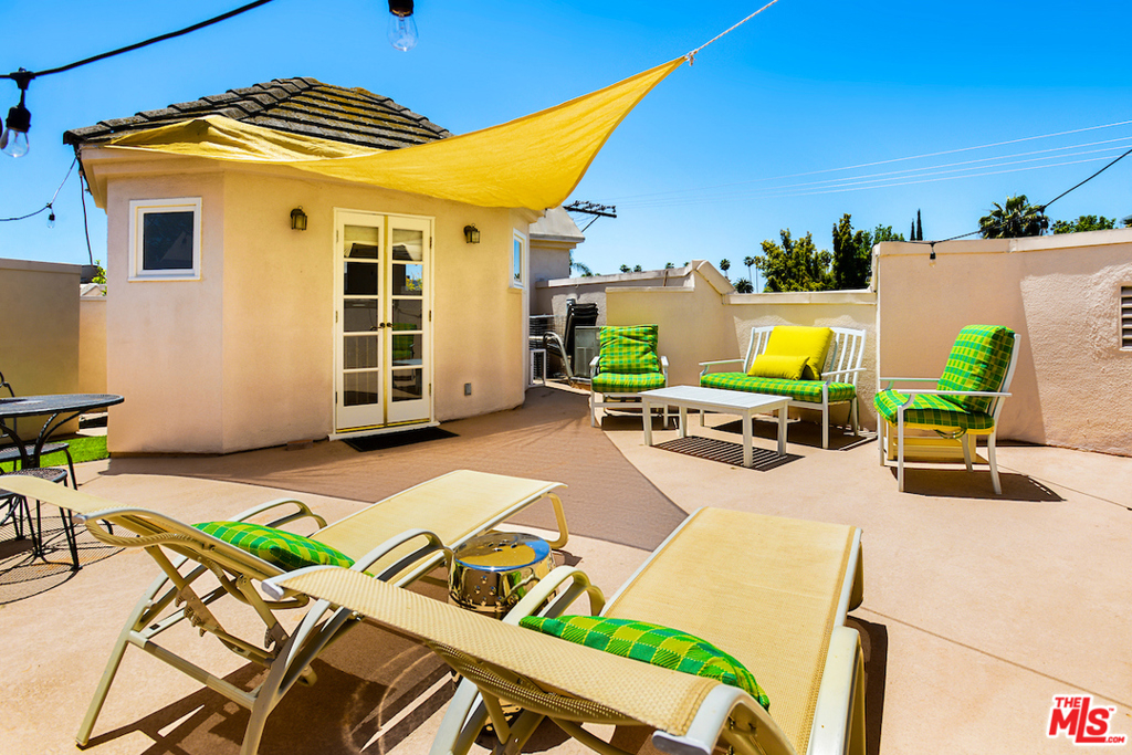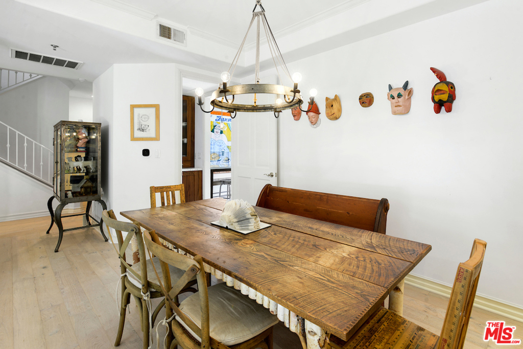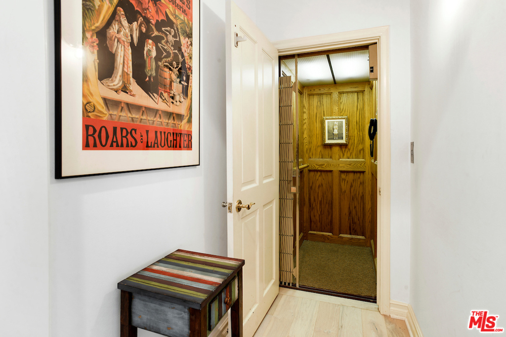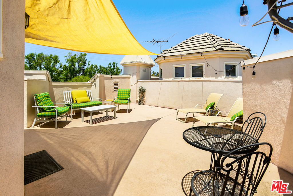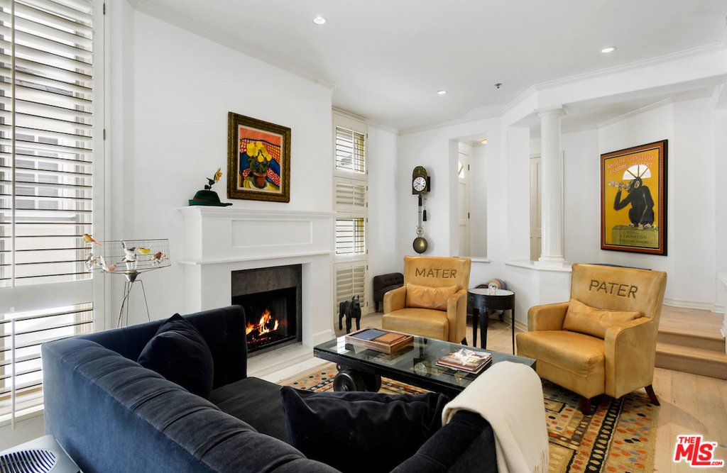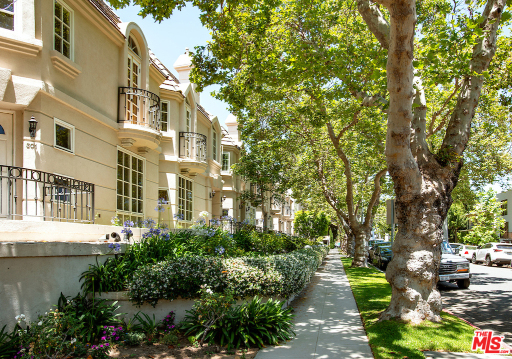 Perfectly located on a lush tree lined Beverly Hills street, a block below Burton Way. A spacious townhouse with private rooftop deck & rear outdoor patio. Elegant living room with high ceilings & fireplace. Expansive dining room with plenty of room for large dinner parties. Exquisite newer Chef's eat-in kitchen with Sub-Zero's, Wolf, Bosh & Blanco appliances & fixtures...opening to sunny rear patio for outdoor dining & entertaining. Master features dual walk-ins, french doors to balcony & massive en-suite bath with Carrara marble, 2 sinks, jacuzzi tub & shower. An additional 2 bedrooms & full bathroom on this floor. Enormous downstairs rooms off direct access privately gated 3-car parking provide a large laundry room, walk-in closets & storage. There is an additional room (without window) on this level which could be 4th bedroom, office or theatre. Elevator connects 3 floors. Top it off with direct access to a private rooftop deck & adjacent landing for possible office or study space.