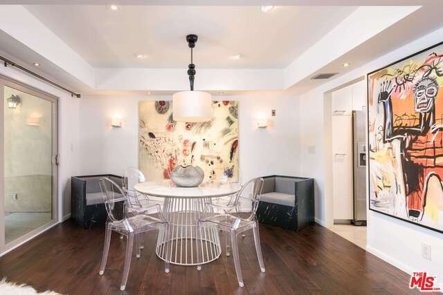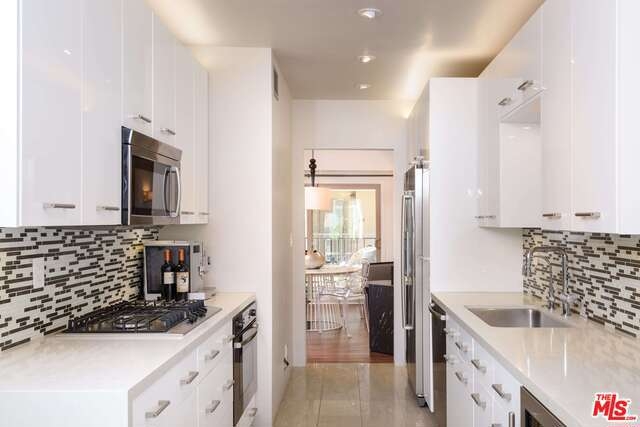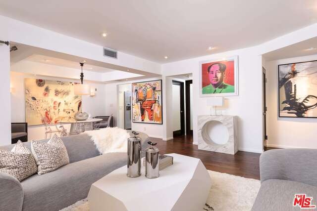 High end designer done luxury condo in prime Beverly Hills location. Gourmet eat-in Kitchen with custom cabinetry, caesarstone counters, Bosch stainless steel appliances and dual zone Sub Zero wine refrigerator. Walnut wood flooring, and oversized balcony. Large Master bedroom suite with custom closets. Modern master bath with Karol cabinetry and Fantini fixtures. Separate guest powder room. Close to world class shopping and trendy restaurants. In unit laundry with Bosch Washer/dryer. 2 parking spaces. All offers will be reviewed as they come in, priced to sell immediately.