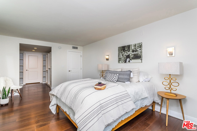 Unique opportunity to own the only 3-bedroom, 3-bath in Durant Towers. Remodeled top floor corner unit with no common walls boasts a spacious 1838 sf of living space. There are two en-suite Masters with City Views and the 3rd bedroom (currently staged as an office) is ideal for the work-at-home professional. Open floor plan features eat-in kitchen with center island, breakfast bar and stainless steel appliances. Generous dining and living areas open onto large balcony. Ample closets throughout provide excellent storage. Relax by the rooftop pool which features a large entertainment deck complete with built-in BBQ'sperfect for al fresco dining and parties. Community laundry on each floor and near to this unit. Two tandem parking spots in gated garage plus storage unit. Located minutes from shopping, dining, schools and entertainment in Beverly Hills and Century City. Ideal for owner-user or investment property.