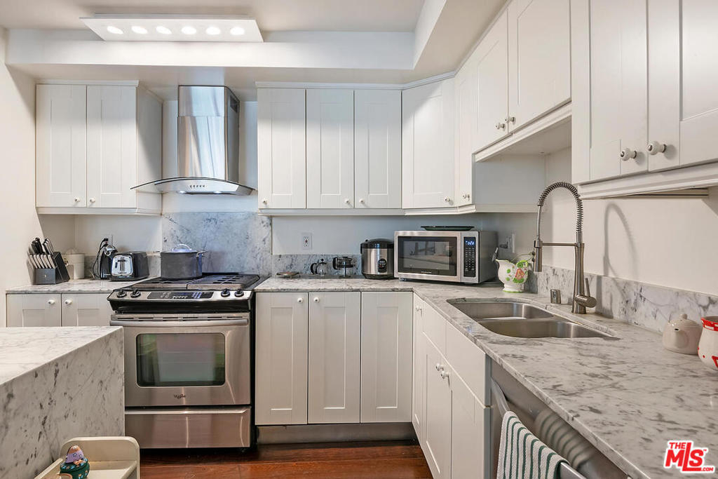 Breathtaking newly remodeled top floor unit in highly sought after Beverly Hills location. The only 3bd/3bath in Durant Towers, this corner unit boasts over 1,800 sqft. Dual en-suite Masters showcase sweeping city views. An open floor plan features eat-in kitchen with stainless steel appliances, breakfast bar and center island which overlooks the large living room with balcony and spacious dining area. A 3rd bedroom with own, ample closets and storage space complete this one of a kind unit. A massive rooftop entertainment deck provides a custom built-in BBQ, dining area and sparkling pool perfect for outdoor dining and entertaining. Community laundry on each floor, near unit. Two tandem parking spots in gated garage plus storage unit. Located in the heart of world famous shopping, dining and entertainment and in close proximity to highly desired Beverly Hills Schools.