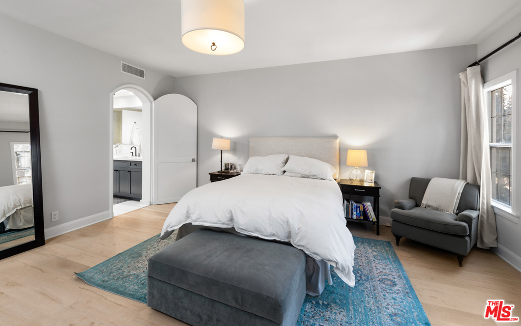 Absolutely stunning remodeled unit in Prime Beverly Hills. Bright and airy living room with French doors leading to balconies. Chef's kitchen with quartz counter tops, Sub-Zero refrigerator and breakfast nook area. Dreamy master bedroom with gorgeous spa-like master bath and large walk-in closet. Spacious second bedroom with full bathroom. Separate powder room. Laundry room with side-by-side washer and dryer. A rare find, in a quiet twelve unit building, on coveted Palm Drive. Just steps away from the world's finest shopping and dining.