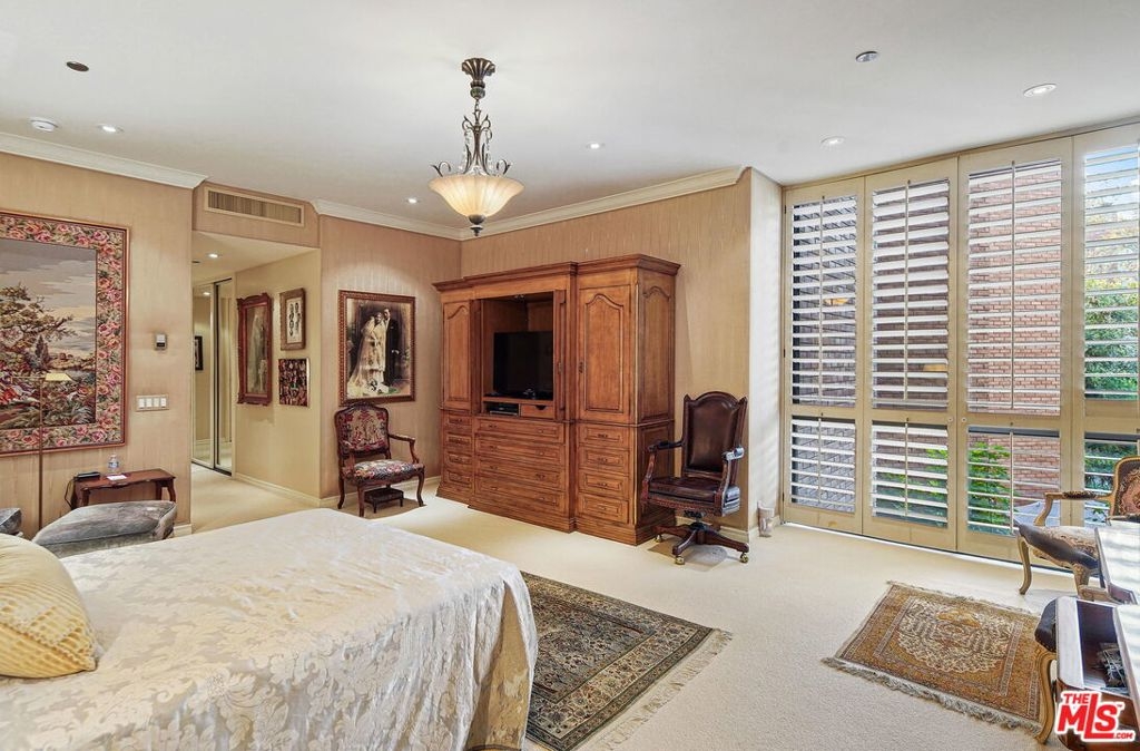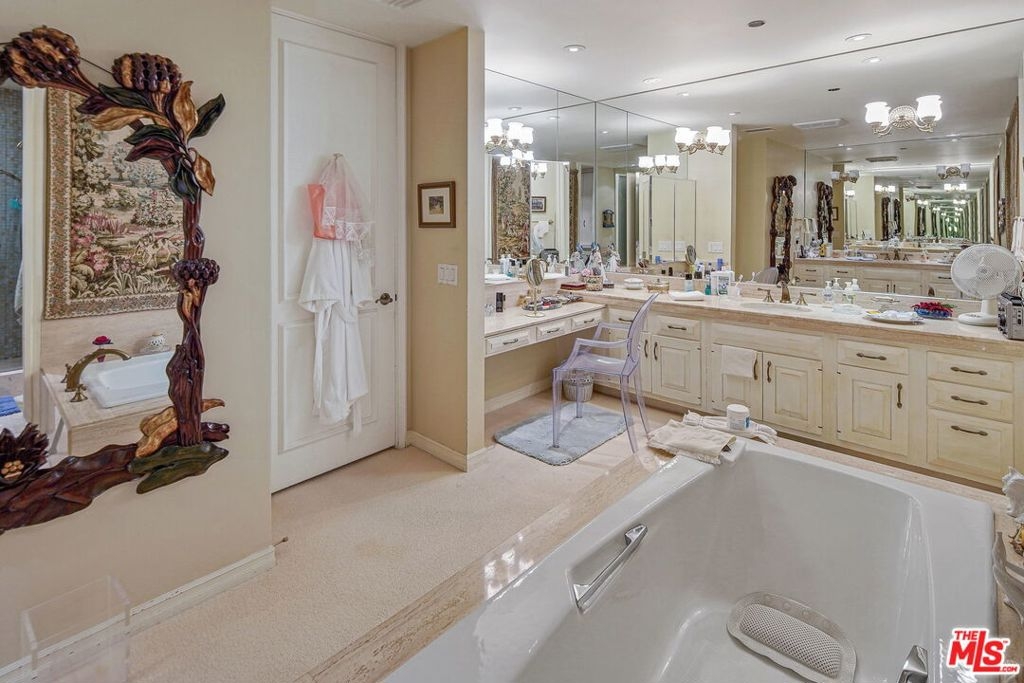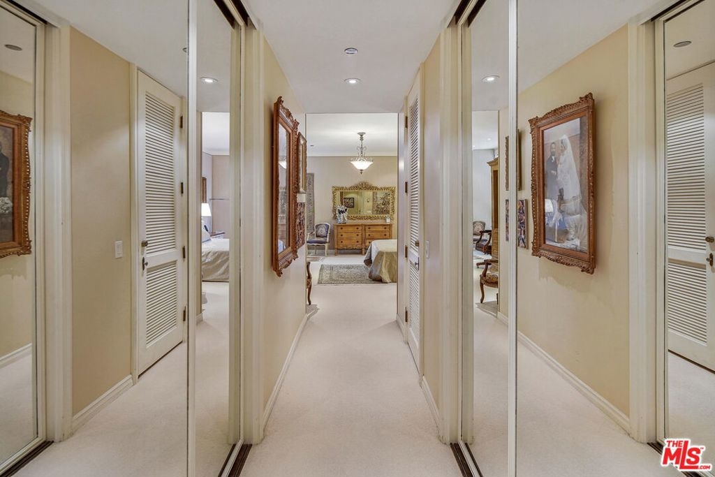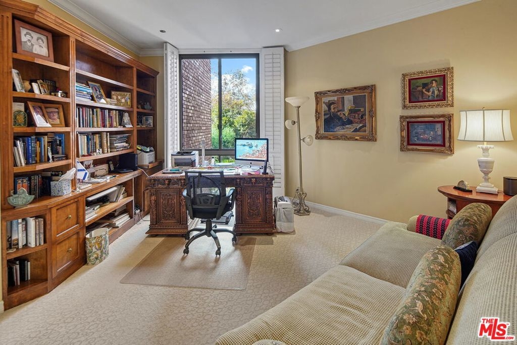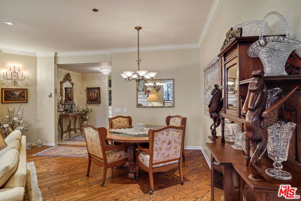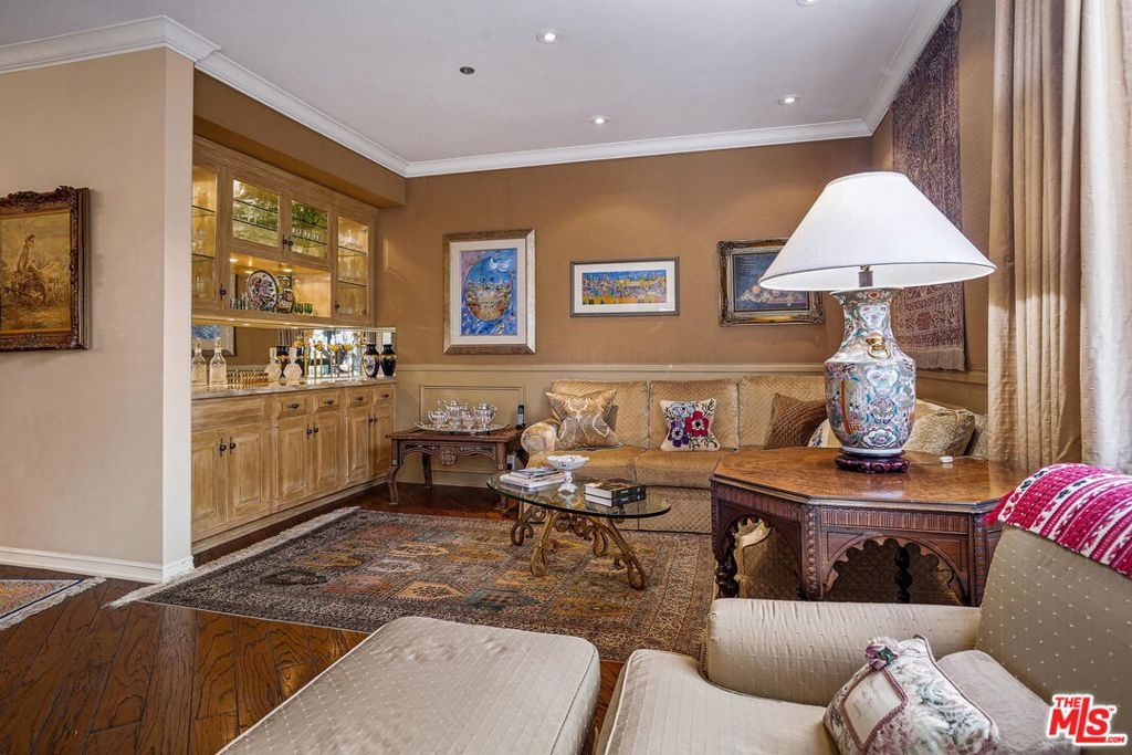 Welcome to this condo in a desirable building south of Burton Way and just moments to Rodeo Drive. Enter the foyer to find a flowing floor plan with multiple spaces for relaxing and entertaining. A fireplace centers the formal living space with adjacent breakfast area and parlor with built-in wet bar nearby. Access the private balcony through sliding glass doors to sip your morning tea or unwind after a long day. The formal dining room features an elegant chandelier and a bank of windows bathing the space in natural light. The galley kitchen has abundant cabinet space, stainless-steel appliances, cooktop with hood, and eat-in area. The spacious primary bedroom is appointed with dual closets behind sliding mirrored doors, while the primary bathroom has dual sinks, makeup vanity, separate jetted tub, shower, and toilet room. The secondary bedroom has built-in shelves and is currently used as an office. Additional amenities include wood floors and in-unit laundry. The building offers top-notch services including full-time door attendance, valet parking for both residents and guests, a heated pool and spa, and gym. Enjoy your new home near fine dining, shopping, entertainment, and all the best Beverly Hills offers.