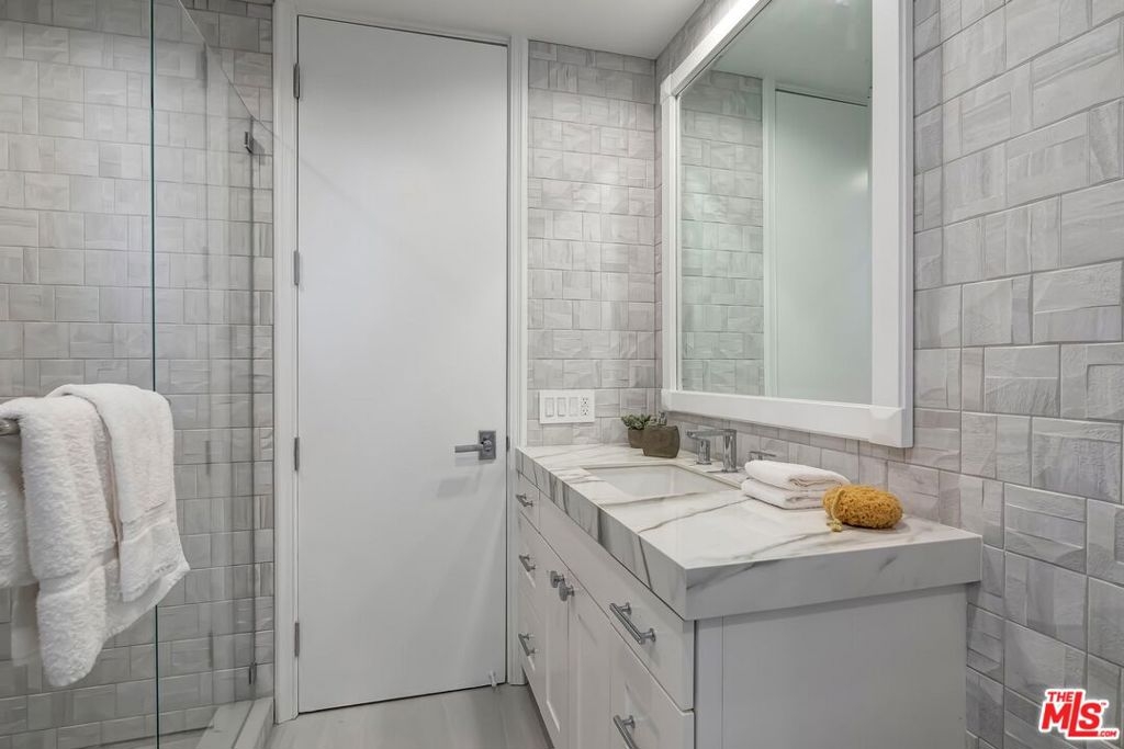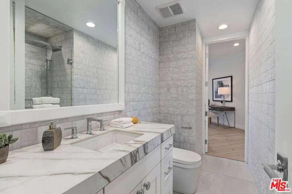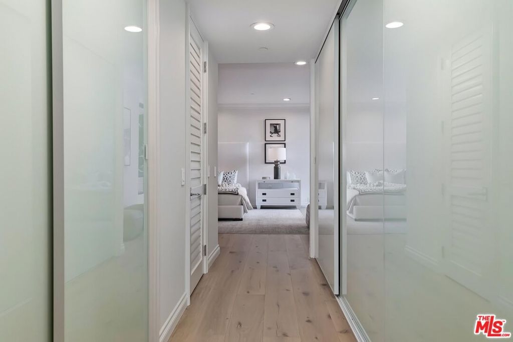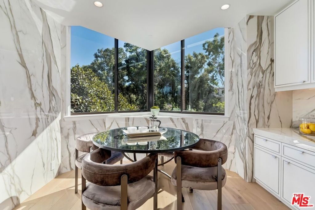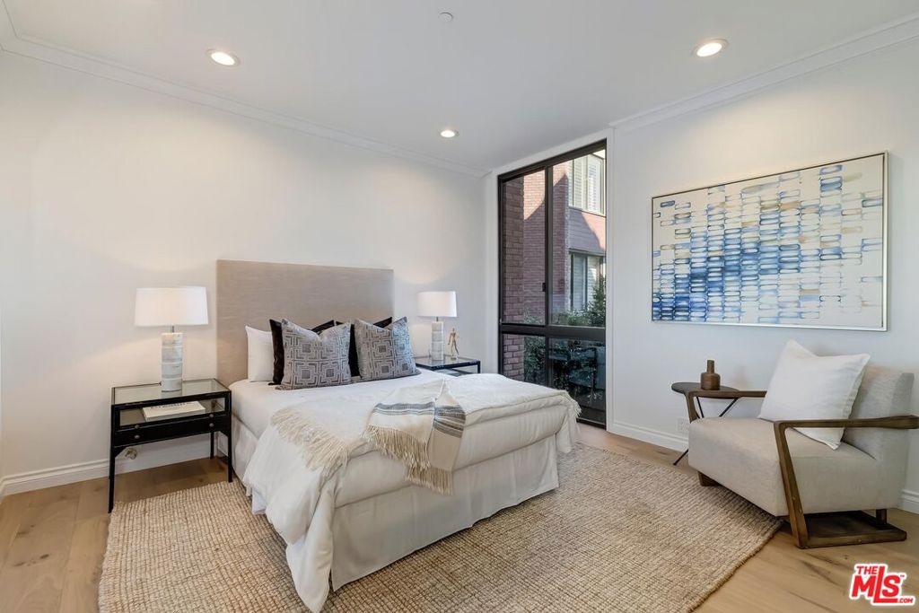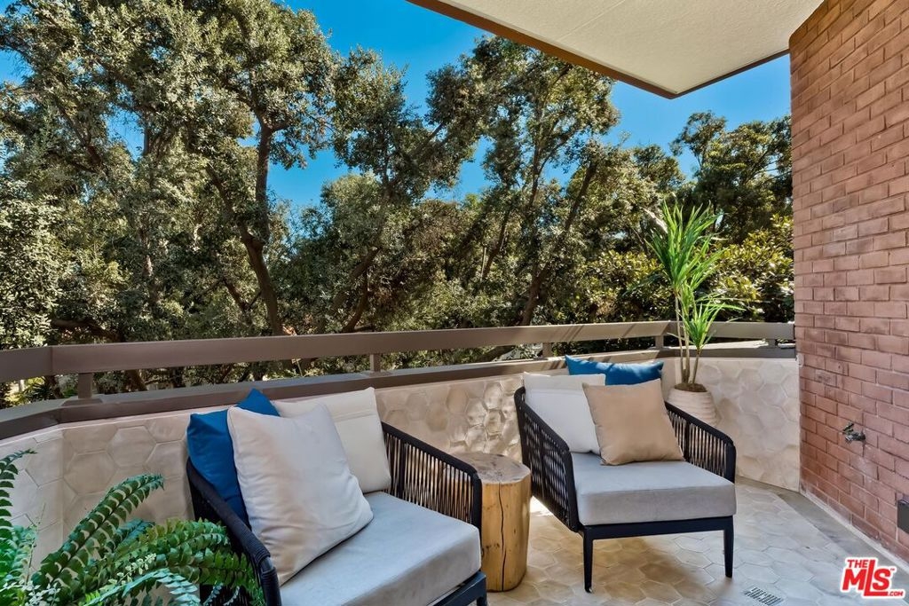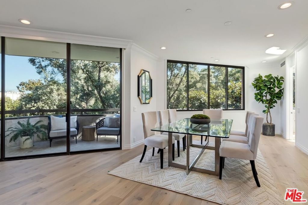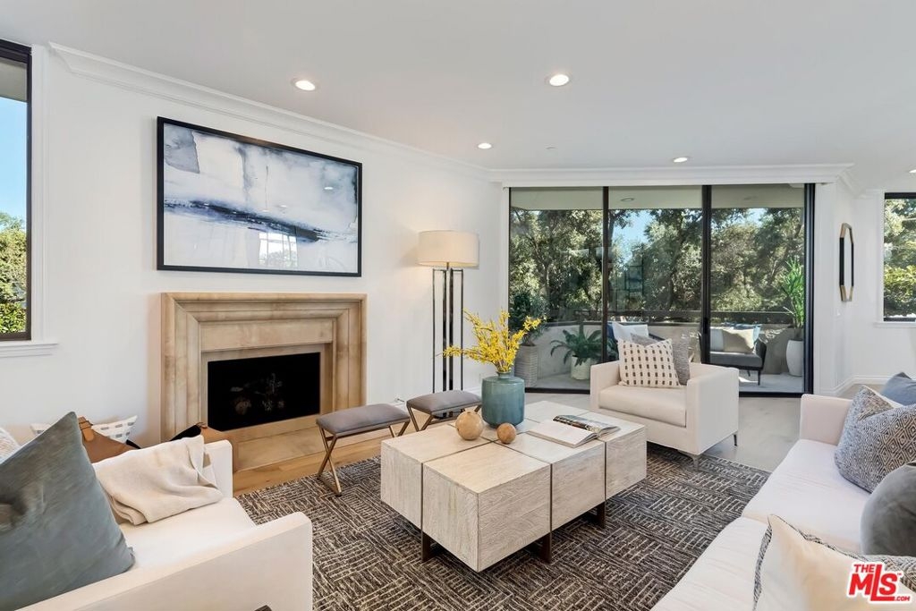 Stunning brand new remodeled 2 bedroom sun drenched condo at the coveted IV Seasons Condominiums located on a beautiful and tranquil tree-lined street in Beverly Hills. Located on the South East corner with peaceful tree top views. Beautiful entry with wide plank light oak wood flooring throughout, high ceilings, recessed lighting, crown moldings and floor to ceiling windows. Terrific layout designed for entertaining featuring a large Dining & Living room with fireplace that leads to a terrace. The gourmet kitchen has stone countertops, Miele appliances, walk-in pantry and a large breakfast area overlooking greenery. The Large primary suite boasts walk-in closet and luxurious bath with a 5 star hotel feel including double sinks, tub & incredible shower. Second bedroom has custom closet and beautiful bath. Laundry room w/cabinets. The building is known for its fabulous services including full time doormen, valet parking for residents and guests, a heated pool & spa, gym and the condo includes extra storage. Very close distance to such hot spots as The Ivy, Cecconis, Craigs, Bristol Farms, and the brand new Alfred Coffee that is a block away. This building offers a great lifestyle in the heart of Beverly Hills!