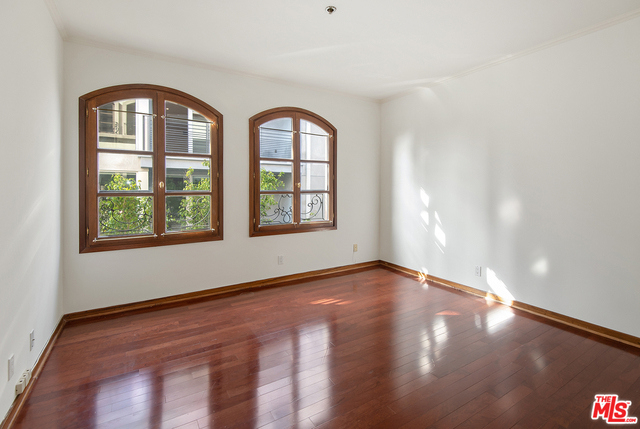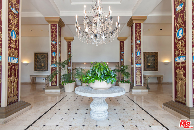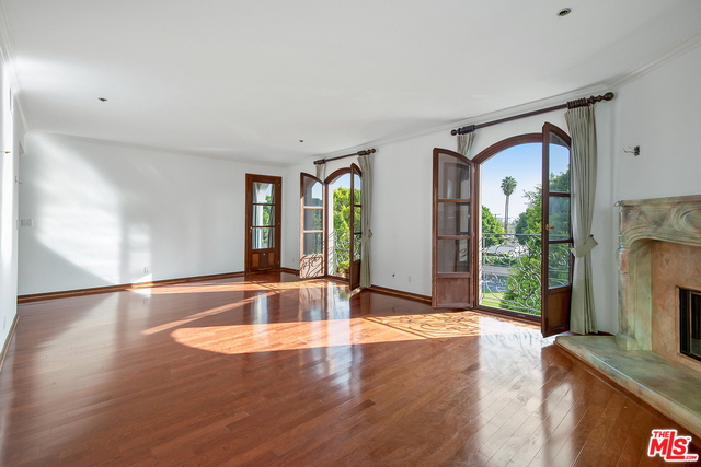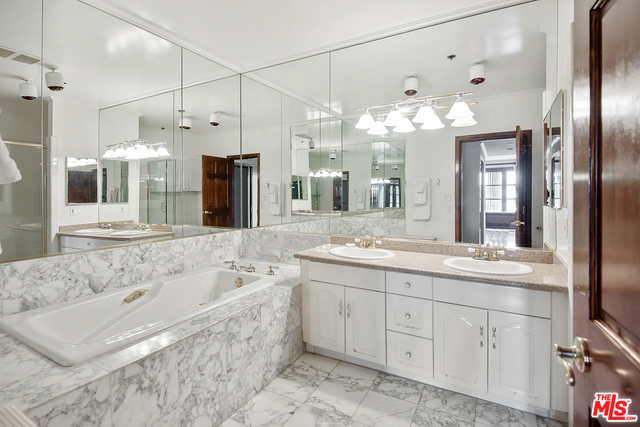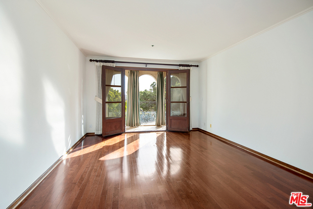 French Normandy style front facing corner unit in prestigious "La Faubourg St. Germaine" on Burton Way next to Viceroy L'Ermitage Hotel. This 2 bedroom 2 and a half bathroom with hard wood floors throughout, exterior french doors leading from living room & master bedroom to terrace with city and tree top views. Great natural lighting throughout the unit. Adjacent to the heart of Beverly Hills shops & restaurants.