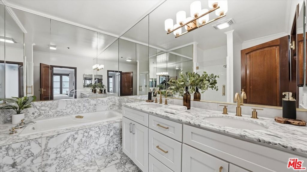 Located in Beverly Hills, one of the world's most prestigious cities, and situated in the exclusive Le Faubourg St. Germain residential property, this breathtaking condominium residence is found on the beautifully manicured and newly landscaped Burton Way, along some of the most inviting tree-lined walking streets and sidewalks of the glamorous City, right next to the renowned L'Hermitage Hotel offering premium reward pricing exclusively to neighboring St. Germain residents. The stunning and cavernous grand lobby is spectacular, one of the largest in Beverly Hills, now being renovated for unveiling April 2026 showcasing a gorgeous story of trending natural colorways with prestigious luxury RH brand furnishings and appointments to set the tone for a contemporary and timeless luxurious living experience your guests will covet. St. Germain also boasts its beloved full-time tenured Concierge offering uninterrupted and unrivaled personalized attention to the care and maintenance of the St. Germain property and the needs of each of its residents, such as greeting guests and service providers, bringing groceries, meal deliveries and packages to residences and providing up to date information to residents on security systems, maintenance and improvements at the property. As you enter the foyer of your residence, you are met with limestone floors which carry you through to the living spaces and chef's kitchen. The elegance of the residence is underscored by stylized crown moldings, arch-top mahogany French doors and windows, the European-style wood-burning and gas-burning fireplace and Juliet balconies throughout. The residence is warmly bathed in natural light in all its living spaces. The newly updated chef's kitchen boasts limestone floors, Wolf cooktop, Wolf cooktop hood, Wolf oven, Wolf speed oven, Bosch dishwasher, recessed ceilings and chef's pass-thru to the elegant dining room as Calacatta Gold quartz countertops punctuate the honored space. The primary bedroom suite offers a sizable walk-in closet and French doors leading to a personal stone-floor terrace continuing the quiet luxury and open floorplan of the residence. The opulence of the primary bathroom boasts marble floors and countertop and separate marble shower and tub. The second bedroom boasts its own walk-in closet and ensuite bathroom with marble floors and countertop. St. Germain includes a spacious fitness center, rooftop deck, side-by-side assigned parking for two residence cars, access to run power to EVs, ample designated separate-floor guest parking and easily accessed oversized private locked storage facility. All easily accessible within brief walking distance to the irresistible restaurants and shops of Rodeo Drive and the rest of The Beverly Hills Golden Triangle.