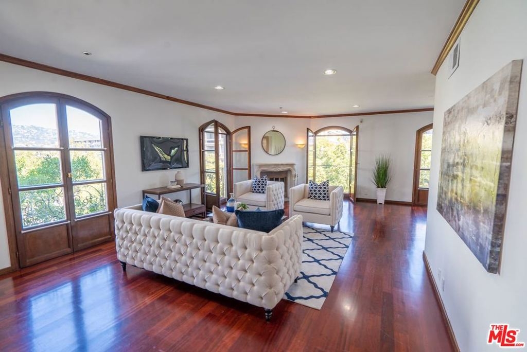 Luxurious, spacious condo with views in the prestigious Le Faubourg St. Honore in Beverly Hills. This bright corner unit is located on the 4th floor and has fantastic views of the Hollywood Hills and lush treetops of Maple Dr, plus a private balcony. Hardwood floors, Washer/Dryer in unit and only one shared wall make this corner home one of the most coveted and rare finds in the area. Additional amenities include: Concierge, grand lobby, controlled access, gym, spa, rooftop sun deck, additional storage and guest parking. This perfect home is near fabulous shopping and dining options, and convenient to Cedars Sinai, Sunday Farmers Market, and more. In the coveted Beverly Hills Unified School District.