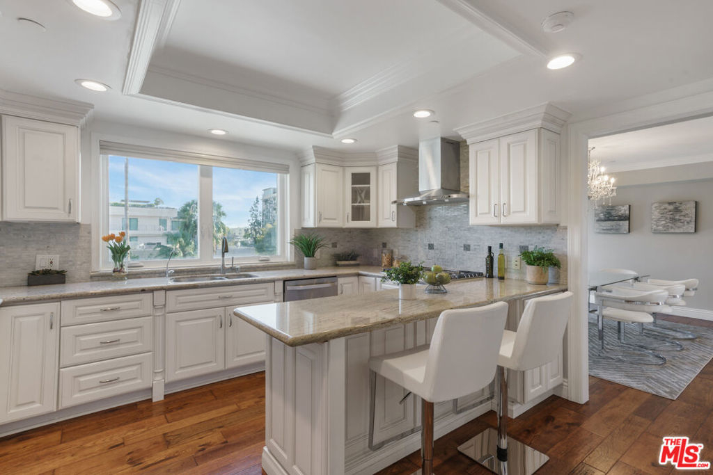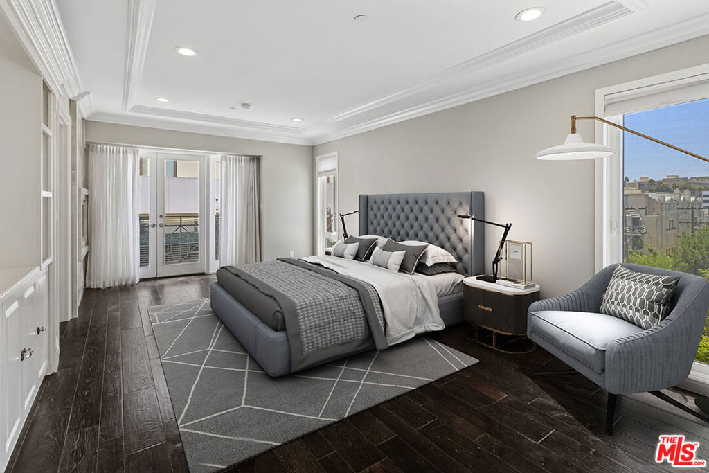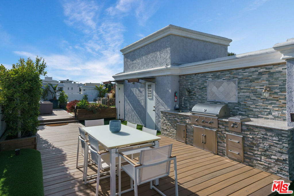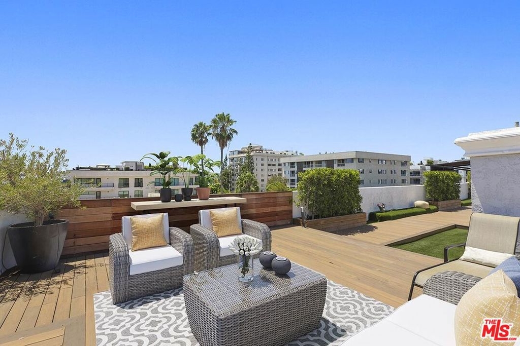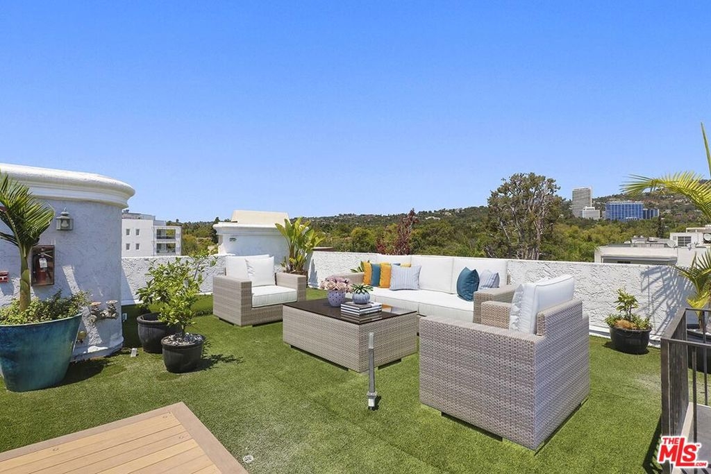 Entertain & Relax in Style at this luxurious Penthouse accompanied by its very own secluded rooftop deck with beautiful sweeping views! Located in prime Beverly Hills on a charming Jacaranda tree-lined street. This elegant 3 bedroom, 3.5 bathroom, 2700 SF Penthouse unit features dual pane windows throughout providing tons of natural light. Chef's gourmet kitchen with stainless steel appliances, wood and stone flooring, high ceilings, an open floor plan, private dining room, a wet bar, fireplaces, and multiple balconies. The spacious primary bedroom boasts two walk-in closets, a spa-like bathtub, and a dry sauna. Additional attributes of this masterpiece include a private elevator providing direct access into the residence, en-suite bathrooms for each bedroom, in-home laundry room, central heat/air, secured gate access to the building, 3 side by side parking spaces, plenty of storage space, and community pool and clubhouse. The enchanting private rooftop deck is expansive at 2600 SF providing impressive panoramic city, mountain, and sunrise to sunset views! Rooftop also includes multiple living/entertaining areas, an outdoor kitchen, dining area, built in BBQ, and bathroom. Within close proximity to wonderful schools, world-class boutique shopping, top-notch restaurants, and the incredible luxury and lifestyle that is unique to Beverly Hills. An amazing opportunity!