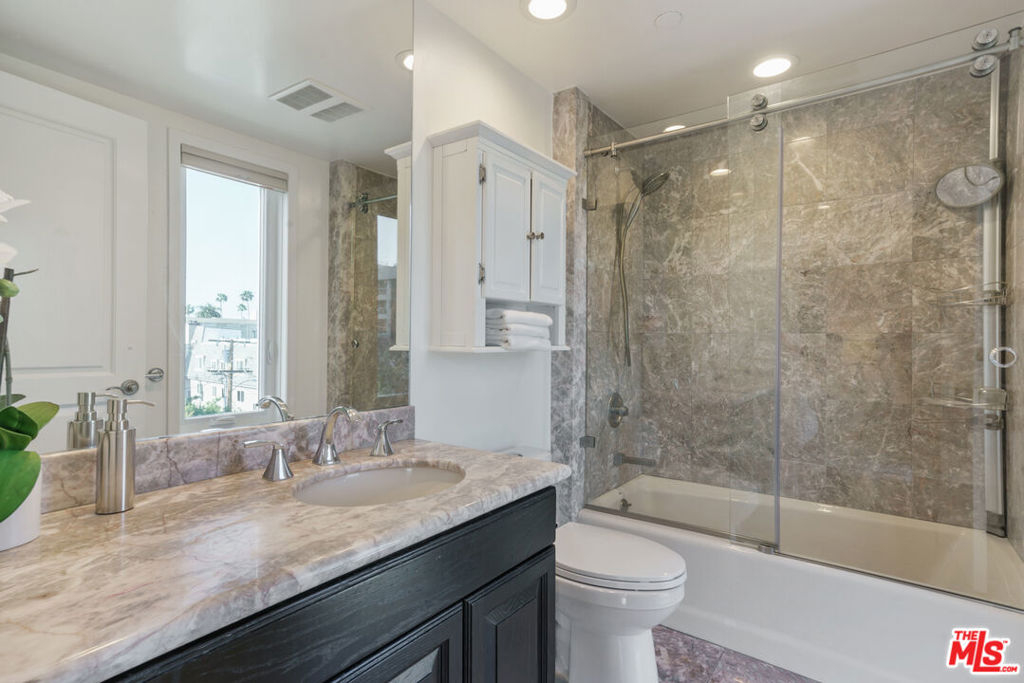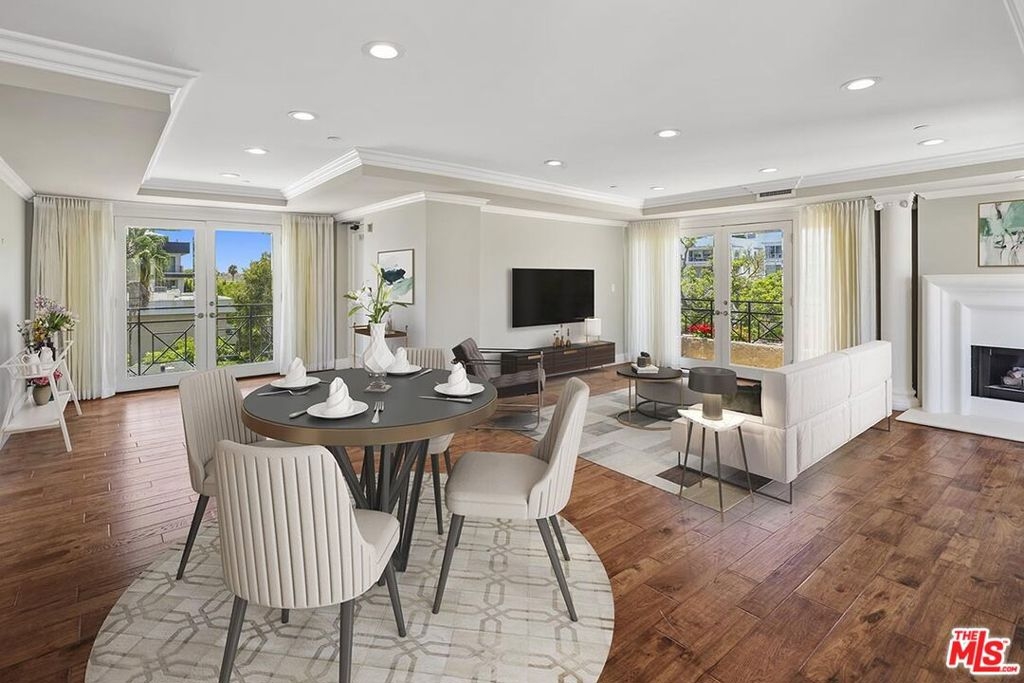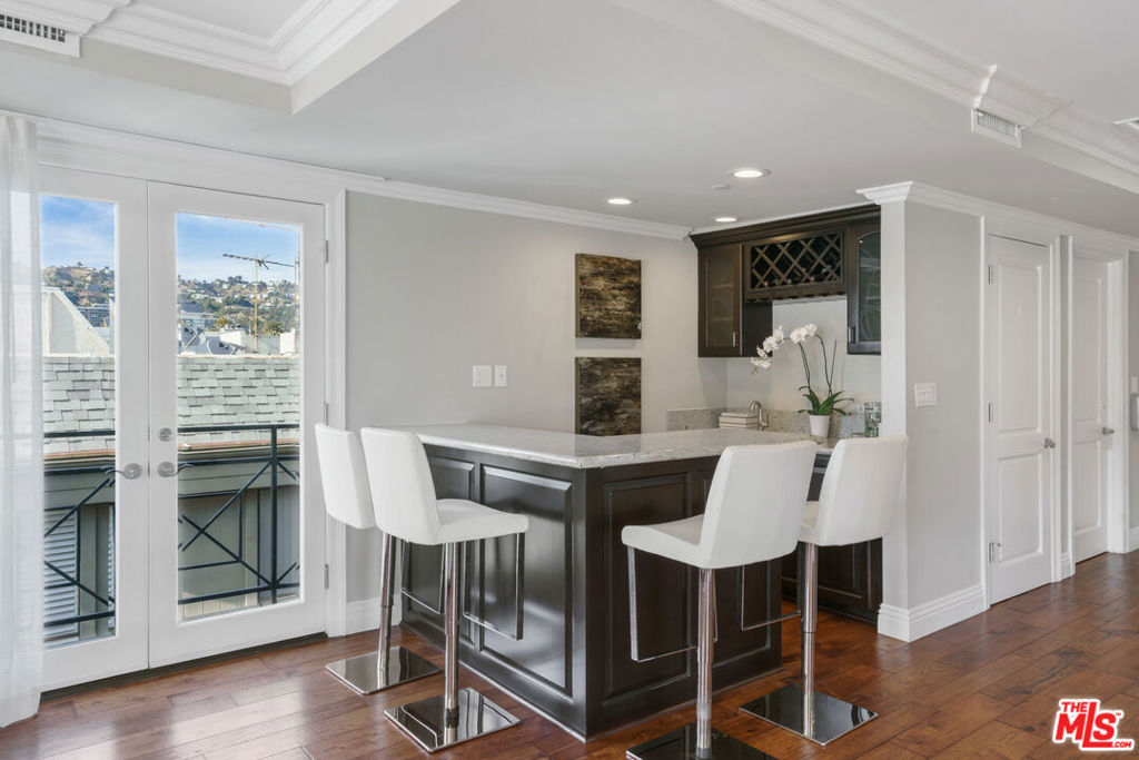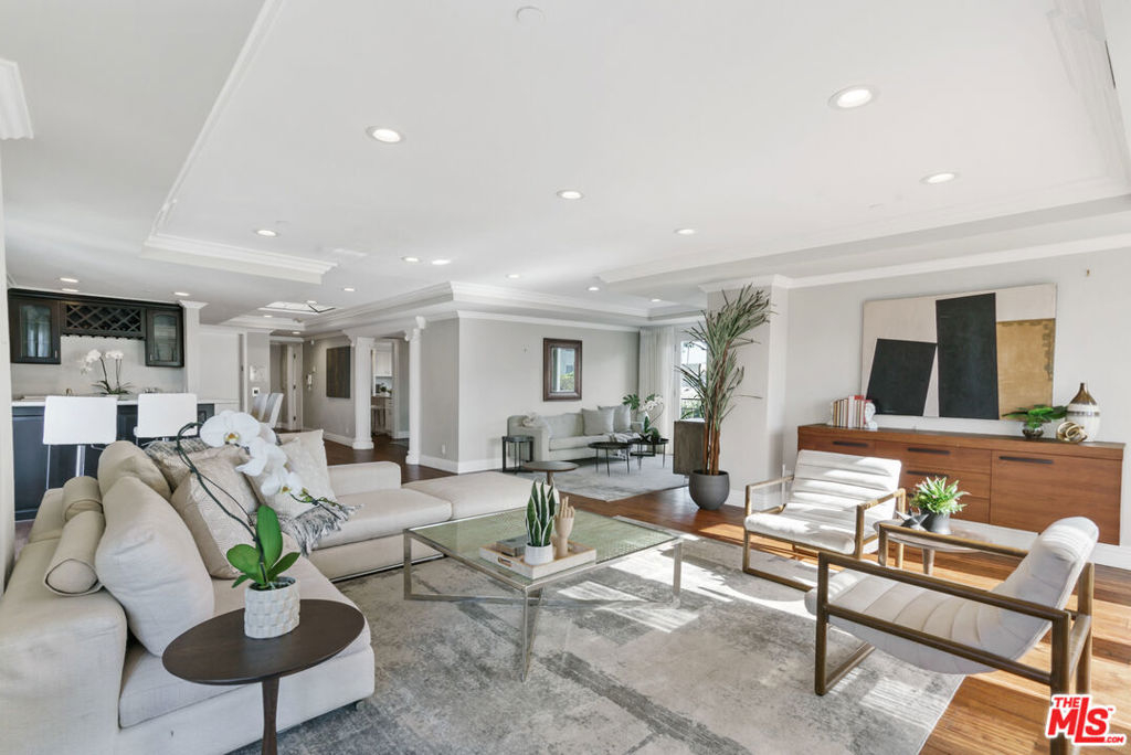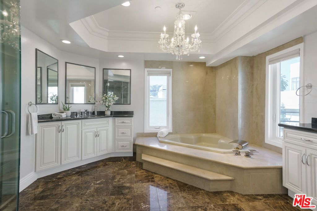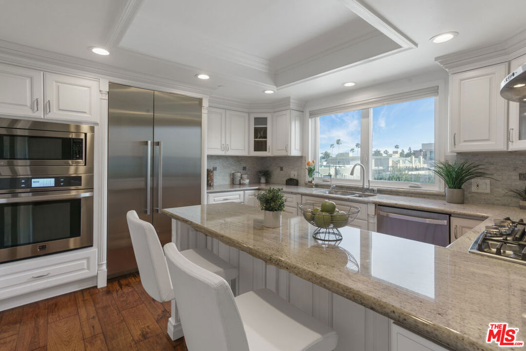 Entertain & Relax in Style at this luxurious Penthouse accompanied by its very own secluded rooftop deck with beautiful sweeping views! Located in prime Beverly Hills on a charming Jacaranda tree-lined street. This elegant 3 bedroom, 3.5 bathroom, 2700 SF Penthouse unit features dual pane windows throughout providing tons of natural light. Chef's gourmet kitchen with stainless steel appliances, wood and stone flooring, high ceilings, an open floor plan, private dining room, a wet bar, fireplaces, and multiple balconies. The spacious primary bedroom boasts two walk-in closets, a spa-like bathtub, and a dry sauna. Additional attributes of this masterpiece include a private elevator providing direct access into the residence, en-suite bathrooms for each bedroom, in-home laundry room, central heat/air, secured gate access to the building, 3 side by side parking spaces, plenty of storage space, and community pool and clubhouse. The enchanting private rooftop deck is expansive at 2600 SF providing impressive panoramic city, mountain, and sunrise to sunset views! Rooftop also includes multiple living/entertaining areas, an outdoor kitchen, dining area, built in BBQ, and bathroom. Within close proximity to wonderful schools, world-class boutique shopping, top-notch restaurants, and the incredible luxury and lifestyle that is unique to Beverly Hills. An amazing opportunity!