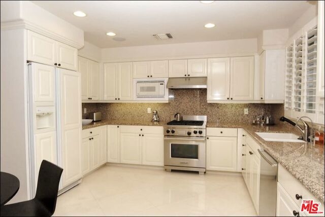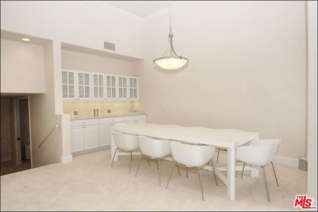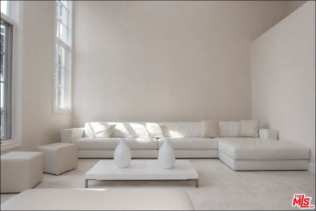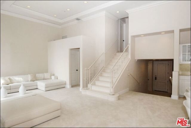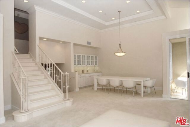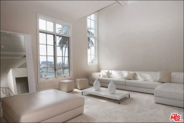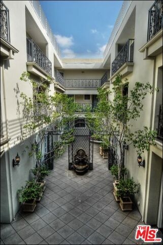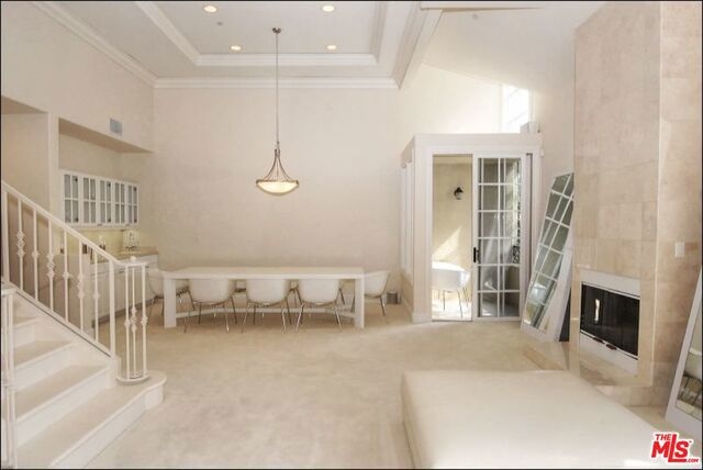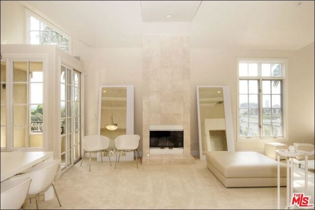 This luxurious penthouse townhouse unit at the distinctively European style Maison Doheny is dramatic, spacious, and bright. The open dining/living room boasts 14' ceilings, a fireplace , and a wet bar. There are 2 en- suite bedrooms on the upper level. The den/office on the lower level has been outfitted with a desk and closet, creating a comfortable 3 bedroom. Beautiful finishes include crown molding and wooden windows. Spacious kitchen with Viking and Bosch appliances. Great views and fantastic location! 3 parking spaces on 2 levels. HOA dues include earthquake insurance. Unit is also for lease at $4900.00.