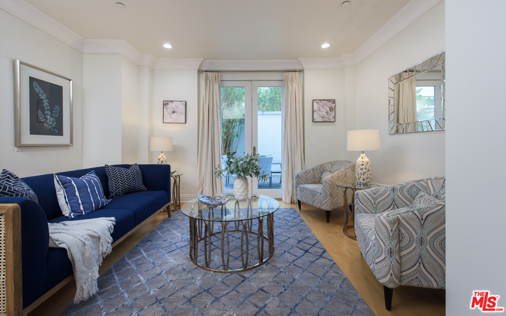 Large, elegant luxury condo on one of the most desirable streets in the heart of Beverly Hills. With convenient access from both the first and second floors, this two-story home features an open floor plan downstairs which flows out onto a lovely terrace with fruit trees. Upstairs are three spacious bedrooms including the en suite master with adjoining patio. This rare offering may also be purchased with the unit next door (106) to create a truly stunning residence or the ultimate family compound. Wonderfully close to the highly-coveted public schools, houses of worship and all the world-class shopping and dining that Beverly Hills has to offer.