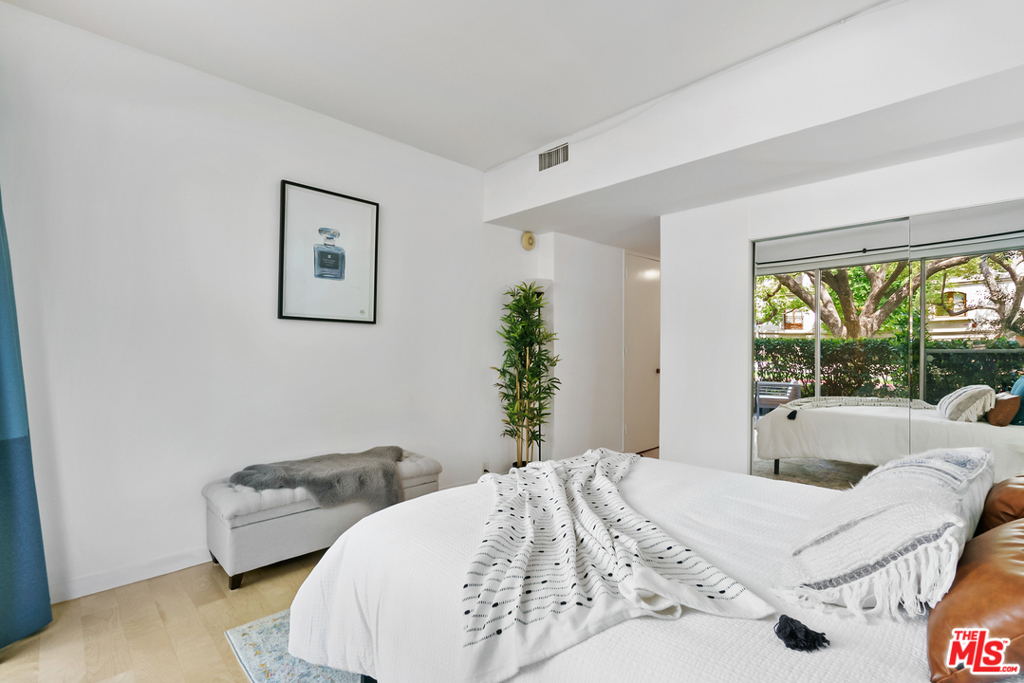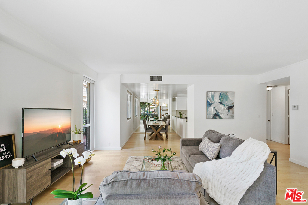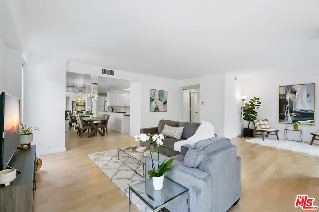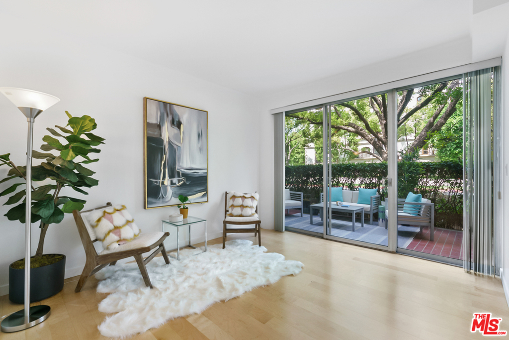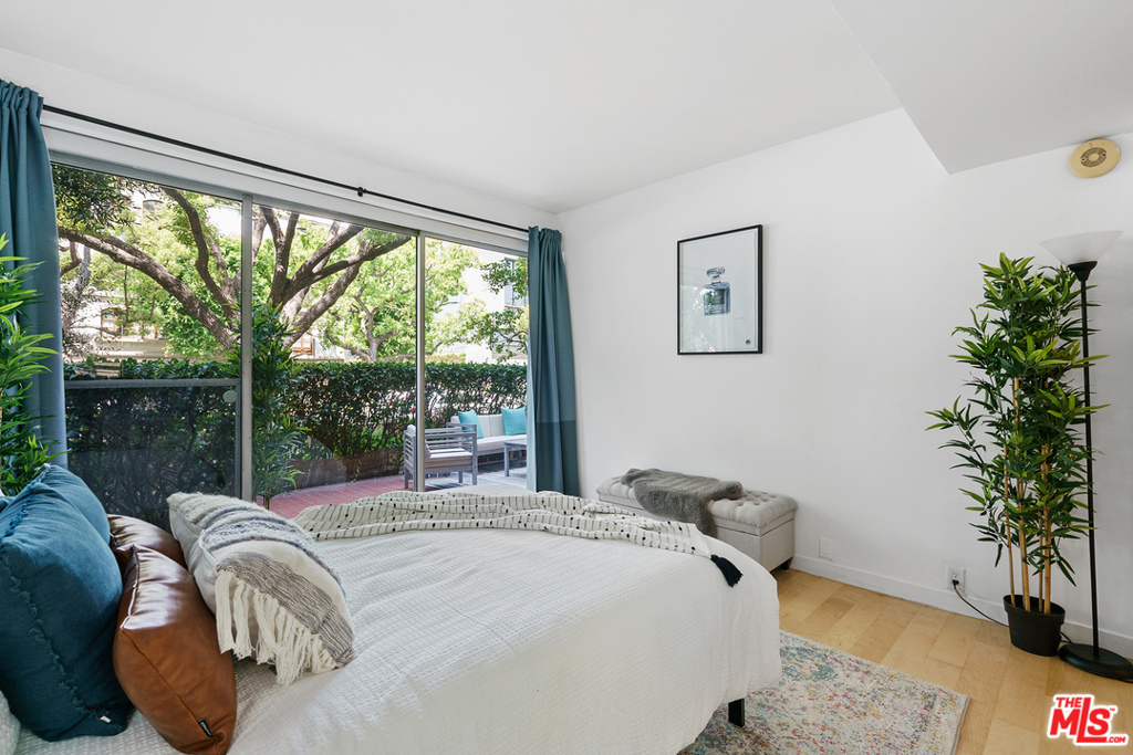 Spacious, large, bright, garden style corner unit with floor to ceiling windows, beautiful hardwood floor, flexible open floor plan in a desirable building with pool, elevator and clubhouse. Master en-suite offers a huge walk in closet, dressing area, and generous bath. Huge living room opens to a nice patio. In one of the most desirable buildings in the heart of Beverly Hills. North of Burton Way minutes away from Rodeo Drive and the Four Seasons Hotel. Must see unit!