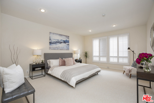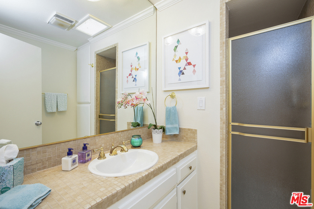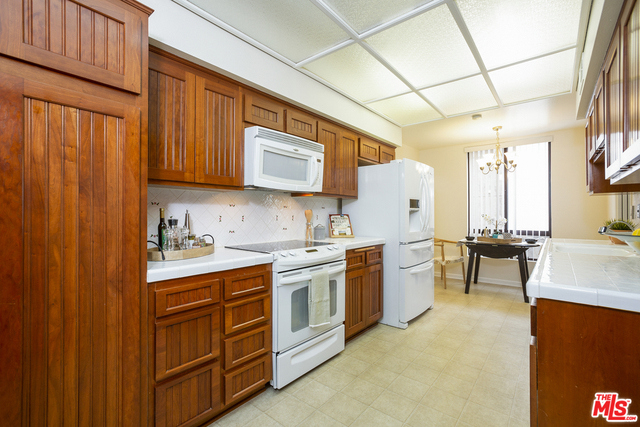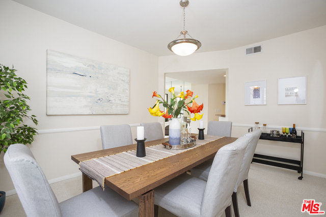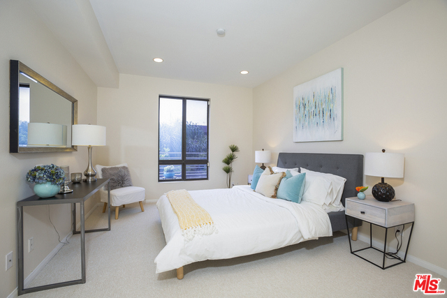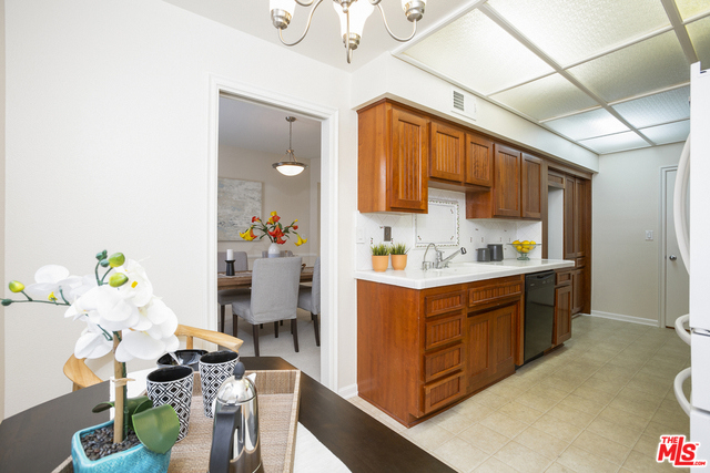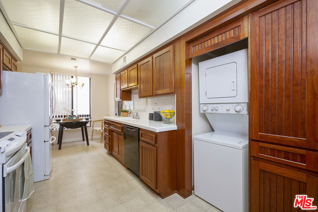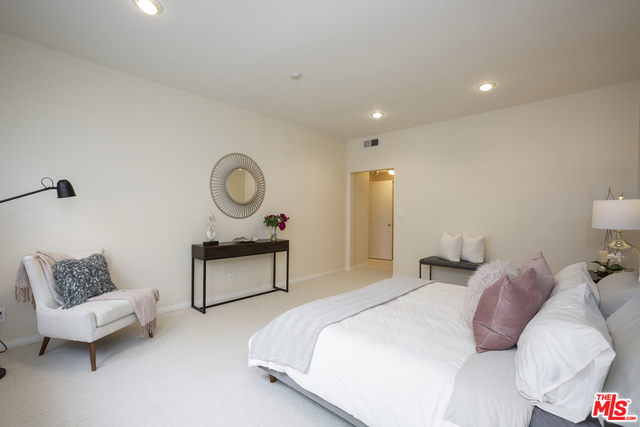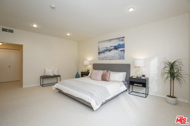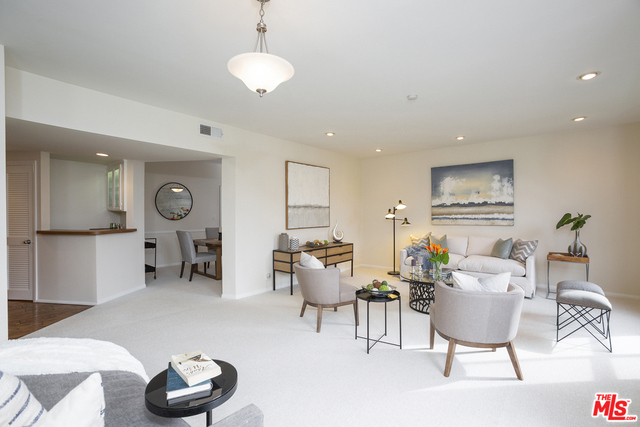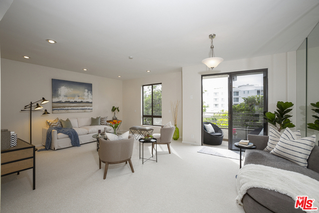 Fabulous front-facing southwest corner penthouse unit in a prime Beverly Hills location. Gracious wood floor entry leads to a spacious living room opening to a west-facing sun filled patio. Formal dining room with wet bar, adjacent to a bright eat-in kitchen with ample cabinet space and stacked washer/dryer. Oversized master bedroom with three closets, including a walk-in. Great master bath with dual vanities and separate shower/tub.Second bedroom front facing w/adjacent bath. Additional highlights include three skylights, recessed lights. Great closet space throughout. The entire unit is just freshly painted and has new carpeting. Side by side parking in gated garage. Building features include a recently updated lobby, swimming pool, community room. Short distance to Bristol Farms and designer shopping on Beverly and Melrose.
