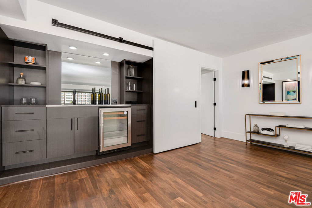 One-of-a-kind sleek & sophisticated 2-story Penthouse located in a secure low-rise building in prime Beverly Hills. This 4 bedroom & 4.5 bath Penthouse with over 3,500 sqft of living space has been totally remodeled with impeccable taste & the finest quality finishes. Foyer leading to the dramatic great room combining the living room & dining room featuring 18ft ceilings, fireplace, spiral staircase to the 2nd level, & 2-story floor-to-ceiling wall of glass opening to the private patio & overlooking the shimmering city views. Gorgeous gourmet kitchen with Calacatta marble counters, professional appliances & adjoining breakfast or family rm. Main level master suite with patio, sitting area, abundant closet space & luxurious bath. Main level 2nd bedroom suite, powder rm & laundry area. Upstairs spacious den, office or gym, sauna, & 2 large brdm suites. 3 parking spaces, storage, 24 hour doorman/guard, entertainment room, gym, & roof top deck with pool, BBQ & incredible 360 degree views.