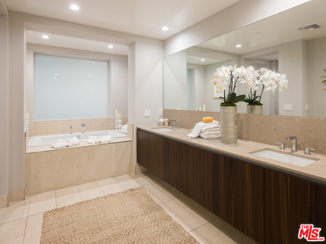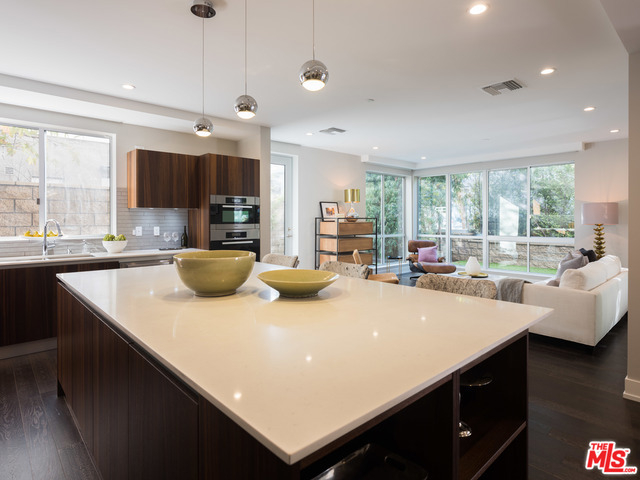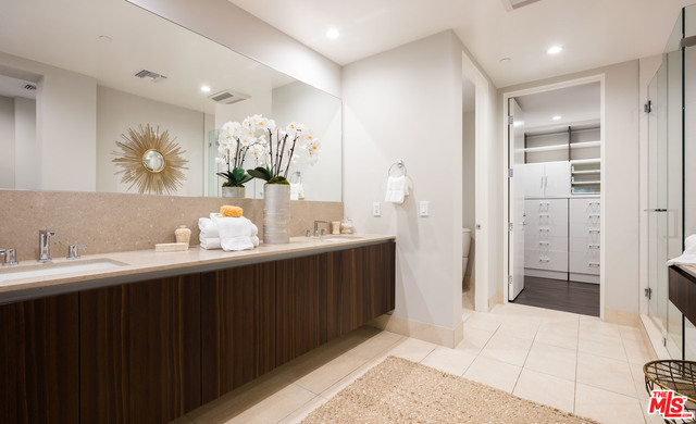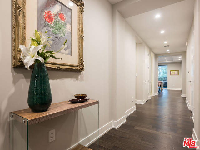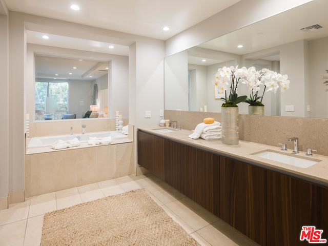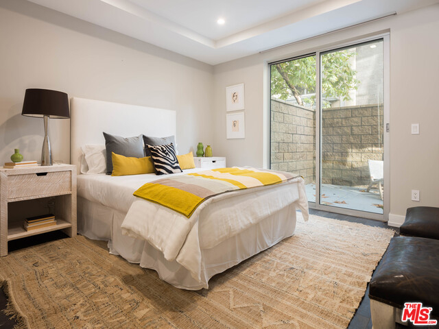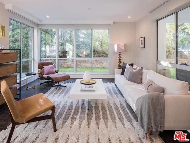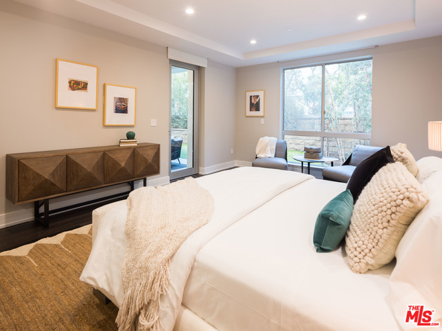 Gorgeous and immaculate contemporary first floor condo with extremely rare and large private & walled front and side yards - perfect for entertaining and for your pet. Direct elevator access to private foyer. Open floor plan, kitchen with huge center island has pantry, Miele and Sub-Zero appliances. Lutron disappearing automated shades throughout and Fleetwood pocket sliding glass doors. Master with large bathroom and oversized soaking tub with on/off privacy glass and finished walk-in closet, plus two additional en-suite bedrooms and powder room. Completed in 2015 and close to the best shopping and dining in Beverly Hills and West Hollywood, this highly sought after Beverly Hills building offers 24-hour concierge, security, guest lounge, fitness room/gym, 3 side-by-side parking spaces, guest parking and separate private storage unit.