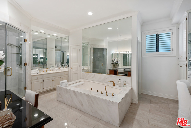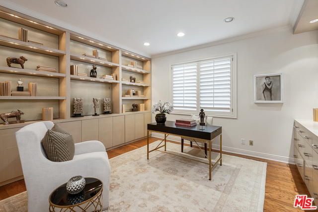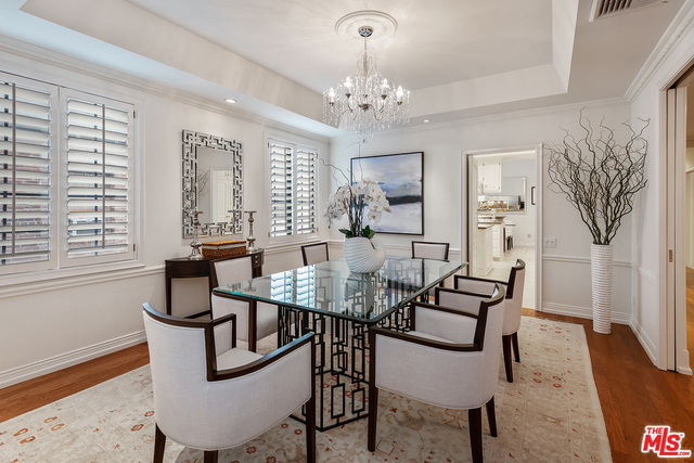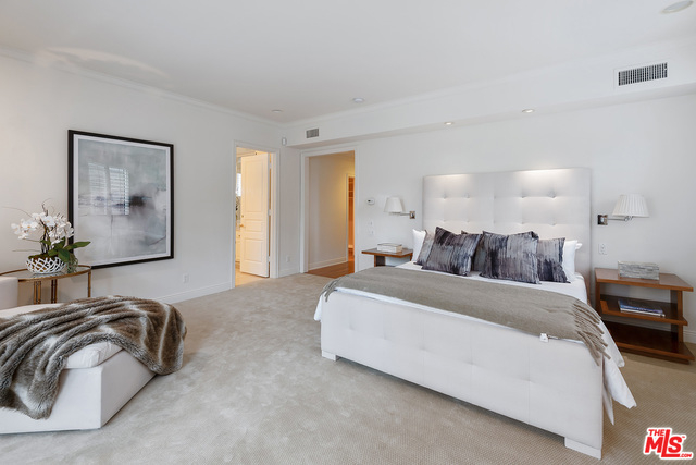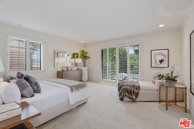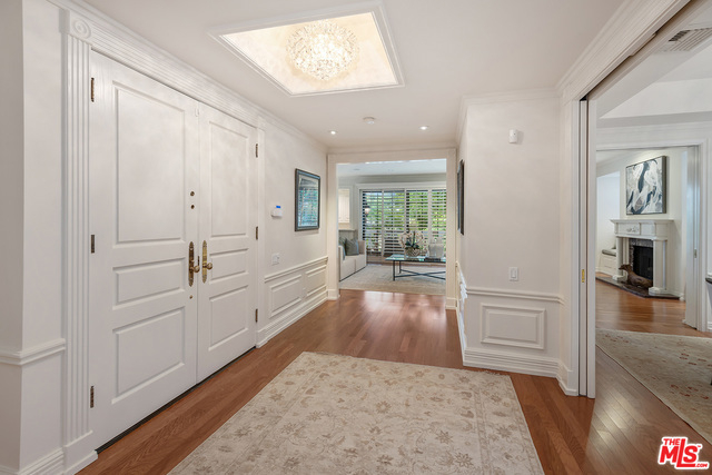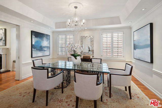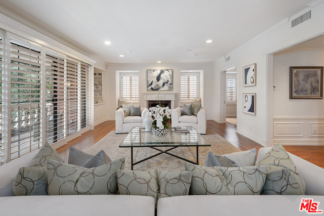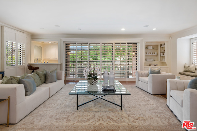 Rare opportunity to own a full floor condominium in Beverly Hills north of Burton Way! This 3 bed, 4 bath home is over 3,000 sq ft. Your single level home has ultimate privacy. More storage than you can imagine! Spacious living room with wet bar, marble fire place, window seats & sliding glass doors to front facing terrace. Hardwood floors, crown moldings, plantation shutters, recessed lighting. Separate formal dining room with silver closet & crystal chandelier. Outstanding cook's kitchen, center island & separate breakfast area. Spacious master suite with balcony, tremendous walk-in closet with built-ins, huge master bath with make-up vanity, shower, spa tub & two sink vanities. Ample linen closet with pull out drawers & folding shelf. Two good sized additional bedrooms, one currently being used as an office with built-ins. Extra large laundry room with sink and lots of storage. Lower level garage has 4 parking spaces and a tremendous private storage room.
