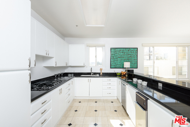 Elegant, light and bright rear corner unit in Beverly Hills. Formal entry welcomes you to a large living and dining area with fireplace, recessed lighting, and expansive windows. Open kitchen with granite counters, stainless steel appliances, and breakfast bar. Spacious master suite with balcony features a walk-in closet, master bath with spa tub, dual vanities and separate shower. Separate second bedroom has an en-suite bathroom with balcony access. Full size washer/dryer, central HVAC. Side-by-side parking and separate storage unit. Well maintained building. Not to be missed