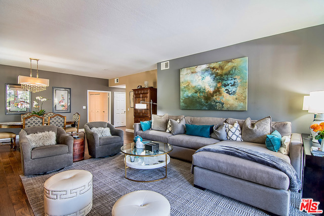 Luxury designer front facing corner condo in prime Beverly Hills location. Sunny and bright with tree top views and three large lovely balconies. Spacious master suite with three closets and master bath with free standing tub. Eat-in kitchen with stainless steel appliances and Viking cooktop. Beautiful wood flooring and custom window treatments. Lots of closets and tons of storage throughout. Full size washer/dryer. Building was recently assessed for $10K for exterior facade, entrance and lobby renovations, which have already been paid by owner. Two Side by side parking spaces, 8 guest parking spaces, individual storage unit, gym, doorman, earthquake insurance, Beverly Hills Schools and much more!