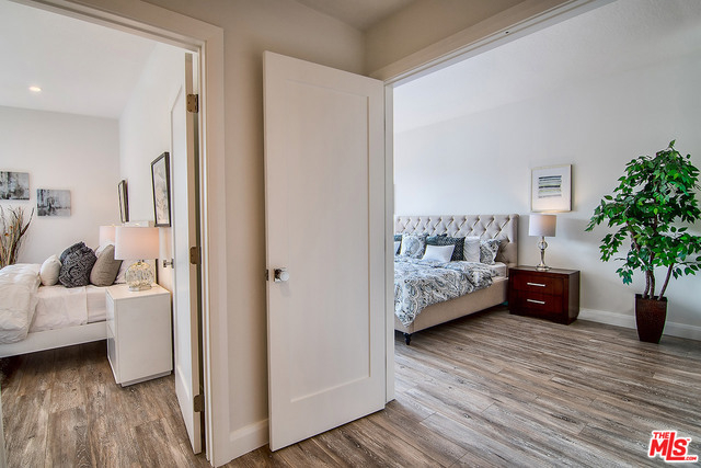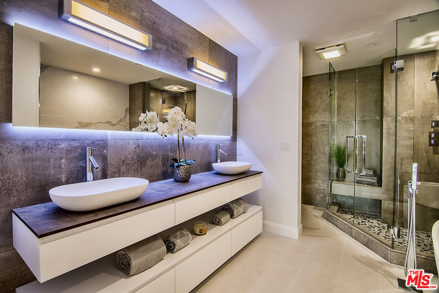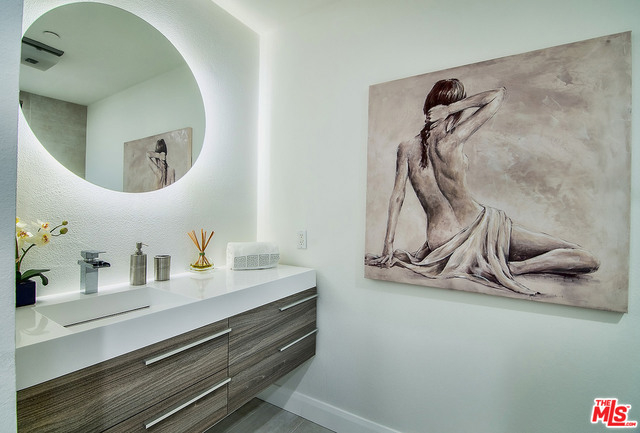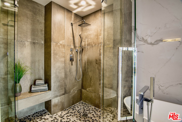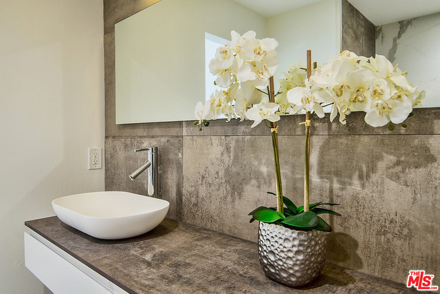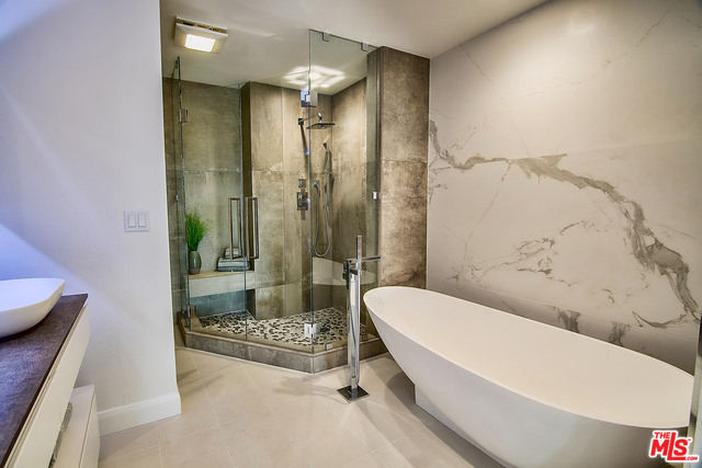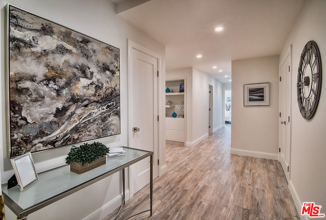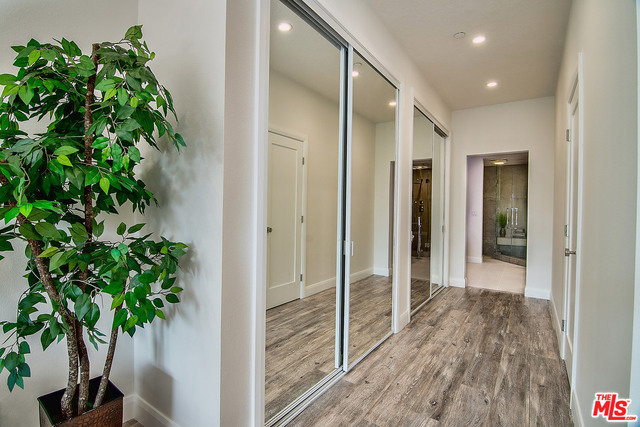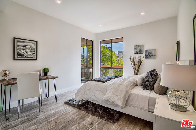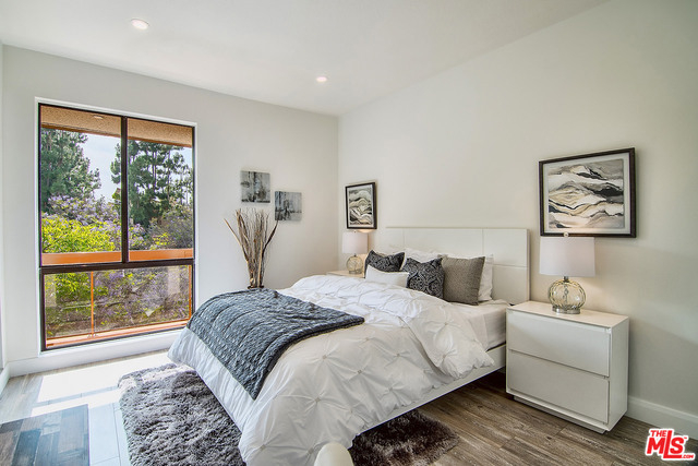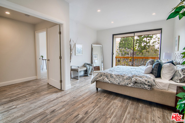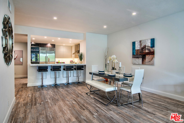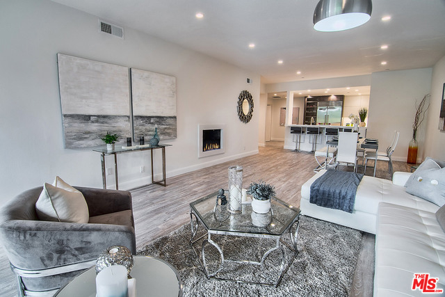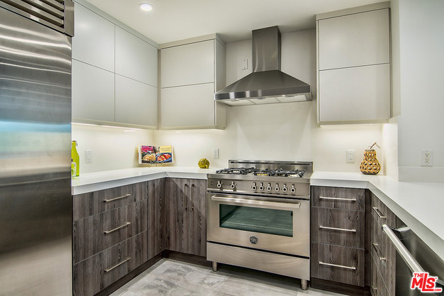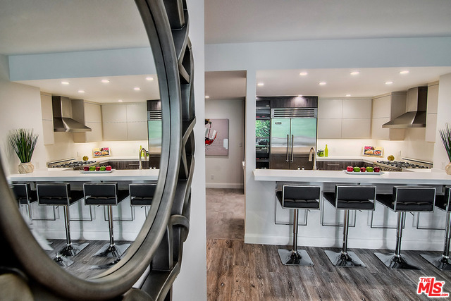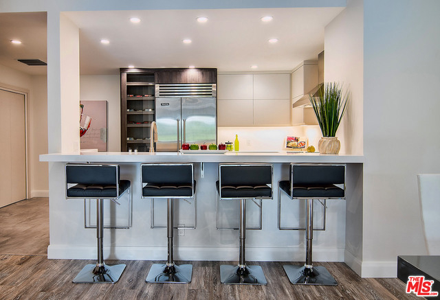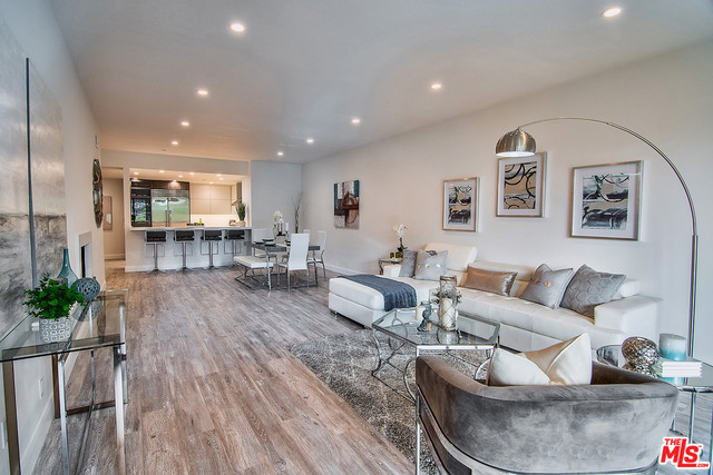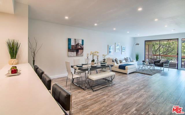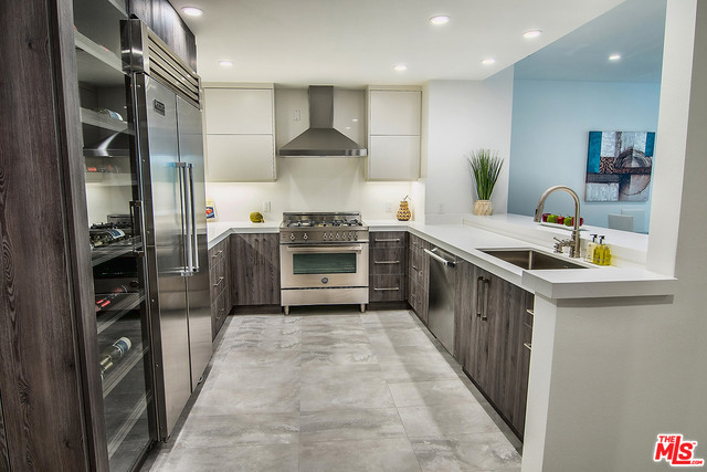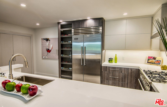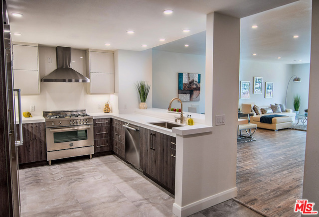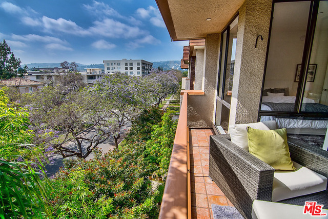Just completed newly renovated top floor, front facing condo in prime Beverly Hills location. Sunny and bright with tree top views. 2 large lovely balconies. Gourmet Kitchen with many amazing details, including Custom Cabinetry, Viking Fridge, and Bertazonni Oven. Beautiful wood flooring throughout. Large Master bedroom suite with three closets. Remodeled master bath with double wall mounted vanity and sinks, LED mirror, frameless glass shower with pebble floor and rain shower head. Assessment paid for facade, entrance and lobby renovations. Two side by side parking spaces, 8 guest parking spaces, individual storage unit, doorman, earthquake insurance, Beverly Hills Schools and much more! Close to world class shopping and trendy restaurants. This will not last!