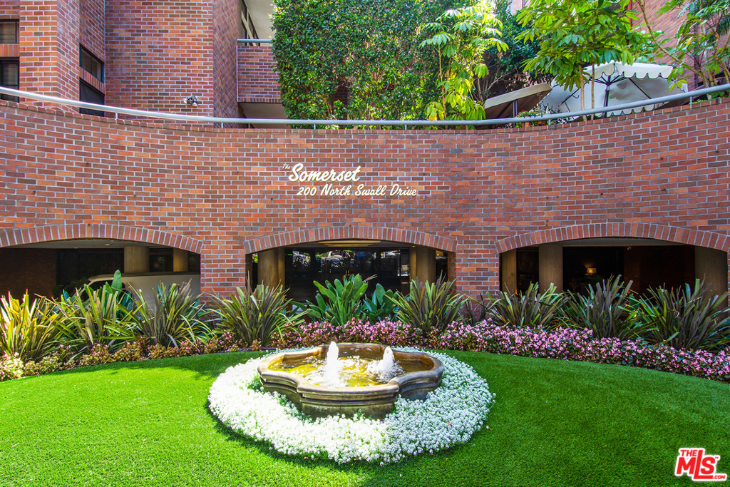 Welcome to Somerset, one of the few buildings in the heart of Beverly Hills with 24 hour valet, gated parking, fitness center, sun deck, and pool with spa. This unit features 2 beds + 2 baths, remodeled French Bistro kitchen and open dining area which seamlessly adjoins to the formal living room with fireplace, wet bar and balcony. Main bedroom has large walk-in closet, balcony access and private bathroom with dual sinks and soaking tub. Second bedroom has built-in desks and cabinetry along with large walk-in closet of its own. Full sized laundry room in the unit and 2 car parking spots.