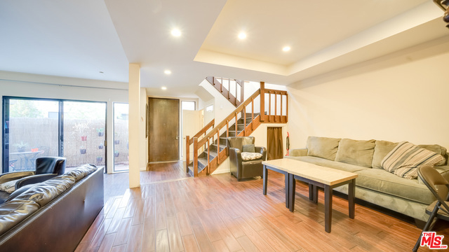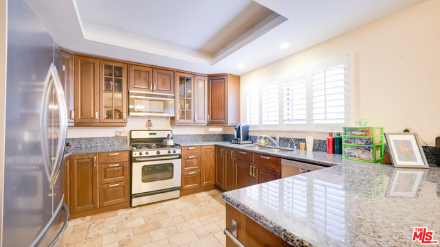 Rare opportunity to own a 4-bedroom, 3.5 bath Town home in Beverly Hills! There is no other product like this on the market! Large town home, single family feel, with access to Beverly Hills school district in a secure building walking distance to La Cienega Park and Restaurant Row. This exceptional 3-level town home is spacious with a formal entry, dining room area, living room with fireplace and large sized bedrooms. Hardwood floors throughout, granite counter-tops in the kitchen with all new appliances, and skylight leading up to the top floor. The complex includes a pool/spa, full camera security system, beautiful landscaping, and a gated garage with 3 side by side parking spaces.