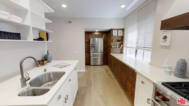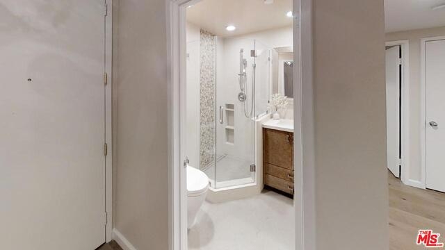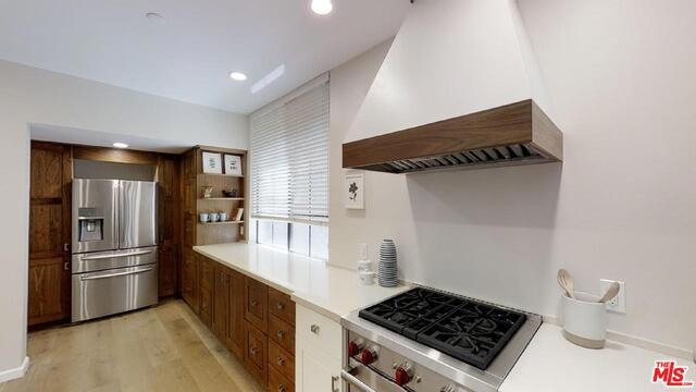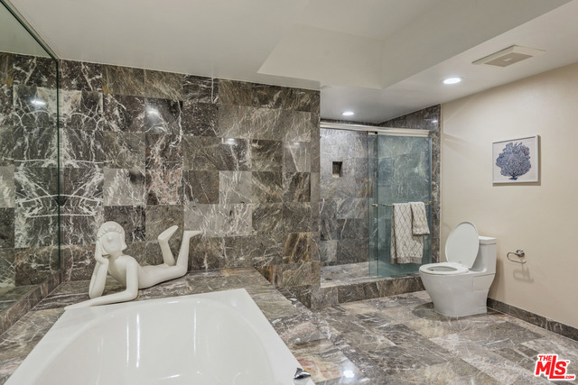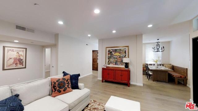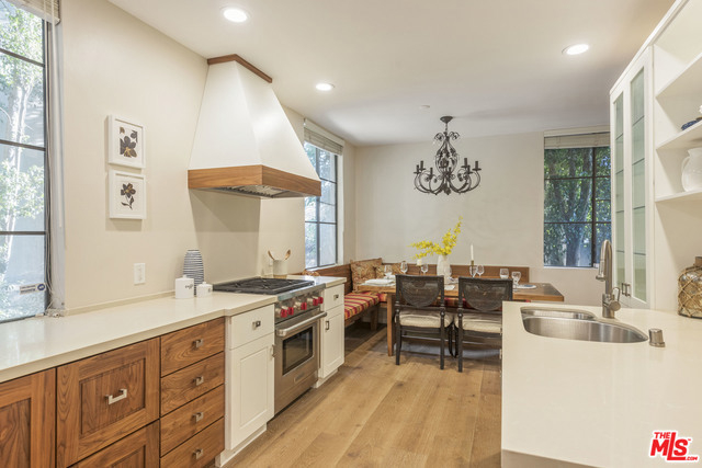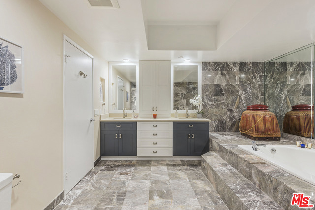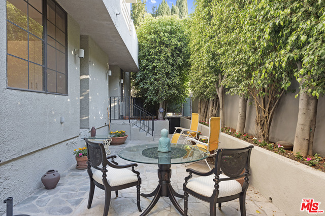 Truly special 3Bd/3Ba residence located in Prime Beverly Hills! Large open floorplan with designer finishes throughout including the chef's kitchen boasting custom cabinetry and stainless appliances. Incredible, Private, secured and landscaped rear patio/yard. Huge Master Suite with fireplace and access to patio, en-suite bath with oversized tub and large walk-in closet. Second bedroom is also en-suite with lovely finishes. Third bedroom has adjacent bathroom. This unit feels like a single-family home with no common walls. Walk to shops and restaurants on Beverly Dr. and world-famous Rodeo Dr. Location, Location, Location! Common areas are being remodeled and will be lovely when complete!
