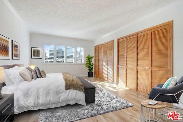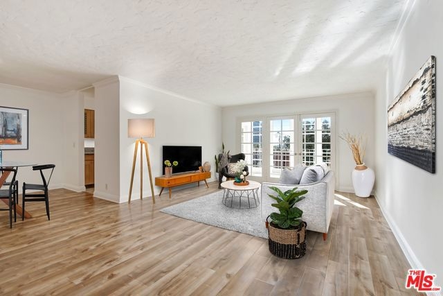 Prime Location for this chic Beverly Hills large 1 bedroom, 2 bath updated condo. Central A/C, new faux wood floors, new paint. Spacious & Bright open floor plan with floor to ceiling windows in Living rm. Master suite with dual baths and large closets. Remodeled Kitchen with breakfast area. Sunny Lanai area with glass doors and great city views. Stunning view from roof deck. One car parking in gated garage. Security building in quiet neighborhood on charming street across from Avalon Hotel. Short walk to market, restaurants & shopping in Beverly Hills and close to Century City. In prestigious Beverly Hills school district. Don't miss out on this opportunity.
