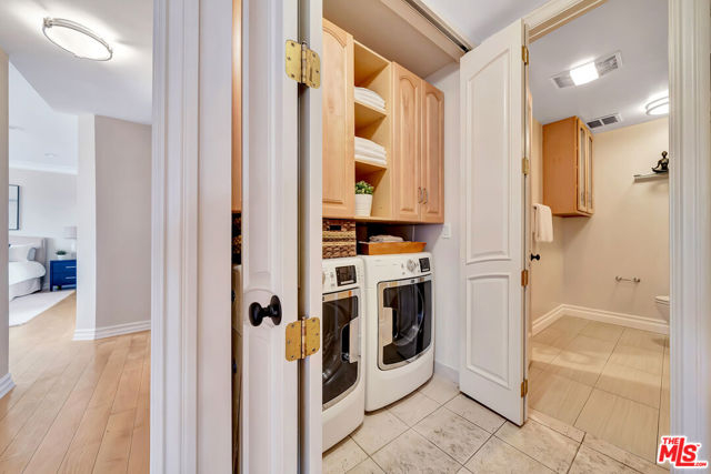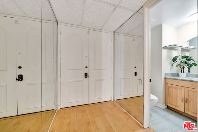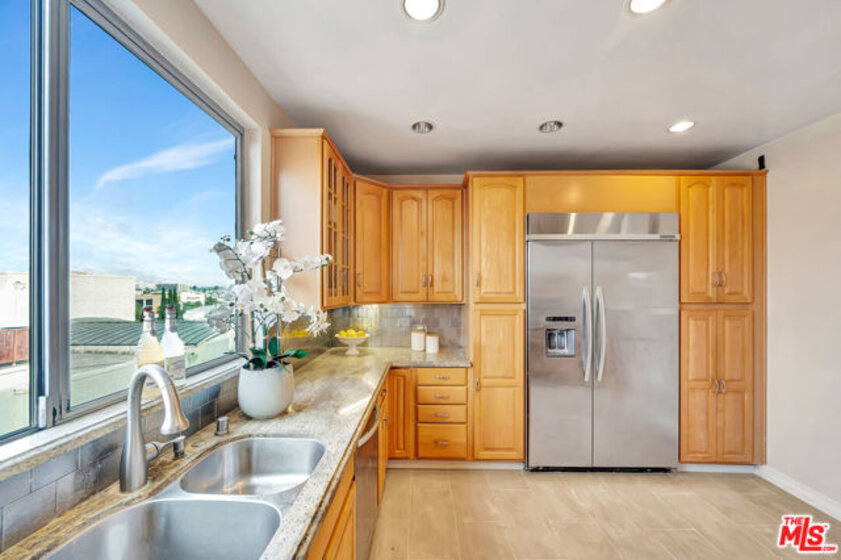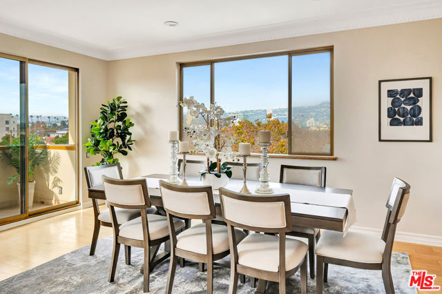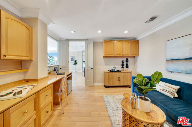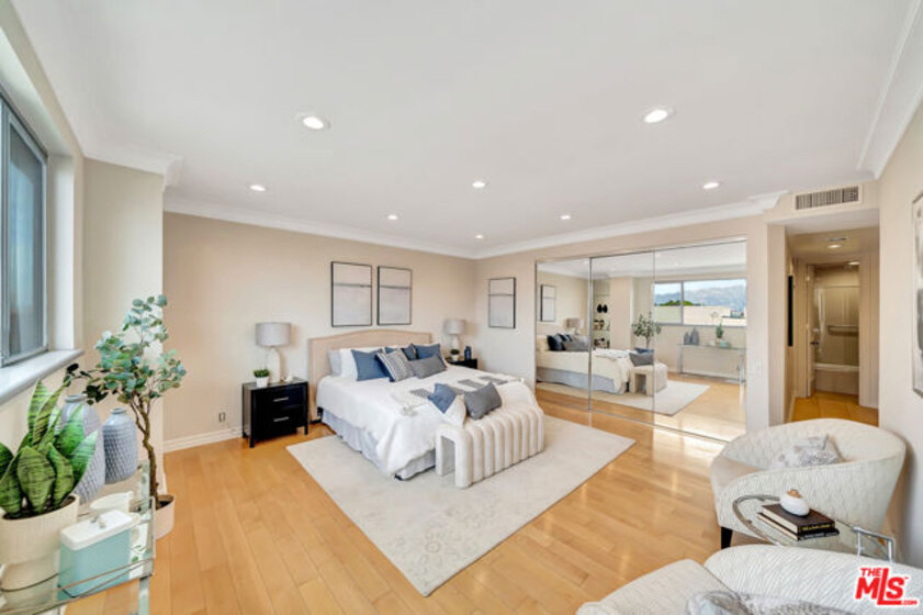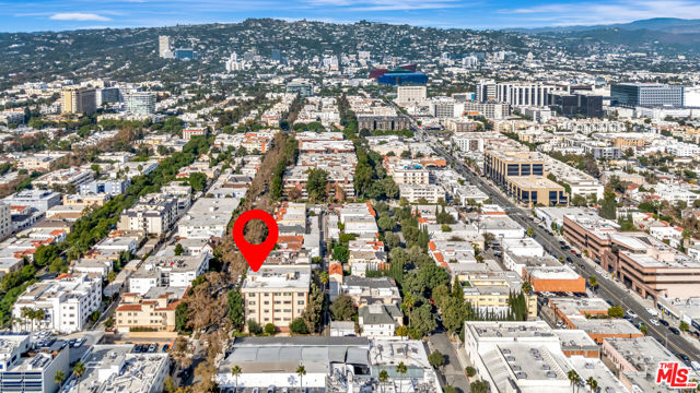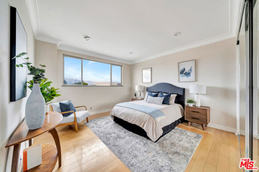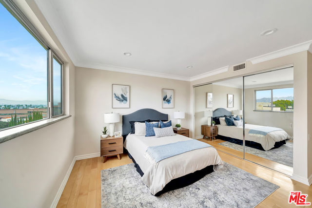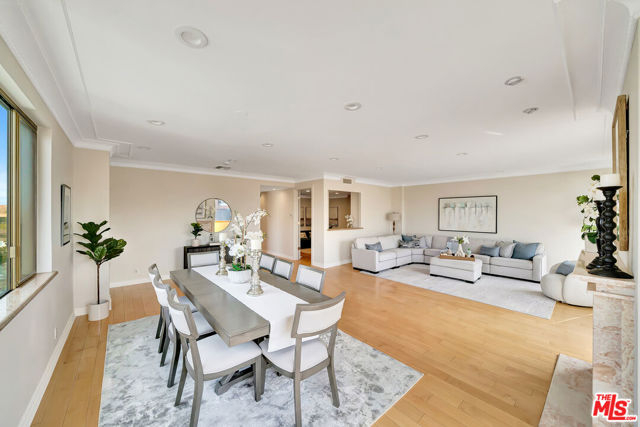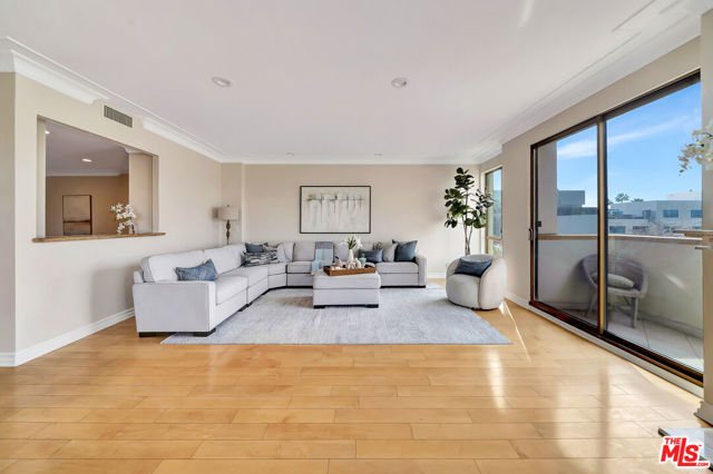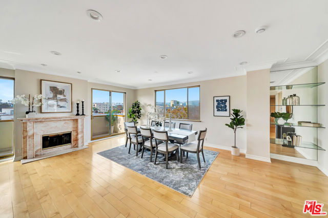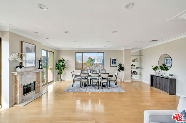 Welcome to 116 N Swall Drive, Unit 501, a sophisticated 2-bedroom, 2.5-bath penthouse perched on the top floor in Beverly Hills. At 1,942 square feet, it offers stunning panoramic views that sweep across Beverly Hills, the Hollywood Hills, and the city's glittering lights. Step inside to an open layout where the living room takes center stage with its marble fireplace and direct balcony access, leading smoothly into a dining area and a versatile den space. The primary suite is spacious with plenty of closet room, and the kitchen comes equipped with generous storage. You'll appreciate the practical touches like in-unit laundry and side-by-side parking. Sunlight streams in through oversized sliding doors and windows, bringing out the beauty of the hardwood floors, crown molding, and recessed lightsmaking it great for hosting friends or just unwinding. The building itself impresses from the start with a polished lobby of marble tiles, mirrors, and greenery, along with standout amenities such as a pool, sauna, sun deck, clubhouse, elevator, and secure gated access. Right in the thick of things, you're just a short walk from Rodeo Drive's high-end shopping, top-notch meals at places like Spago or The Grill on the Alley, the historic Greystone Mansion, and the peaceful Beverly Gardens Park. It's the essence of upscale city life for those who know what they want.